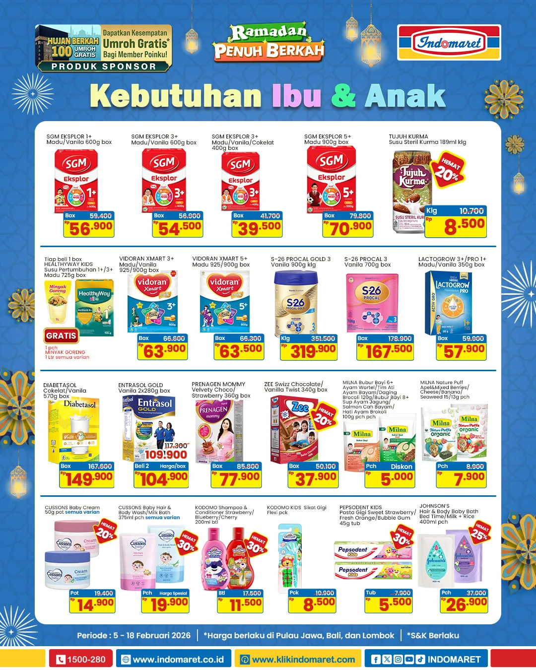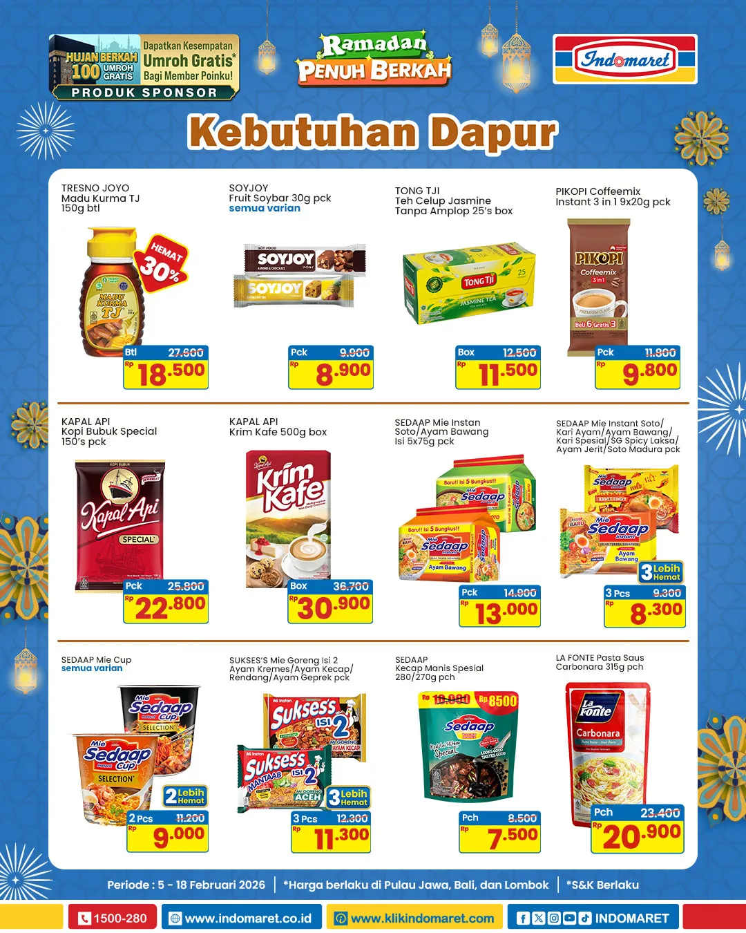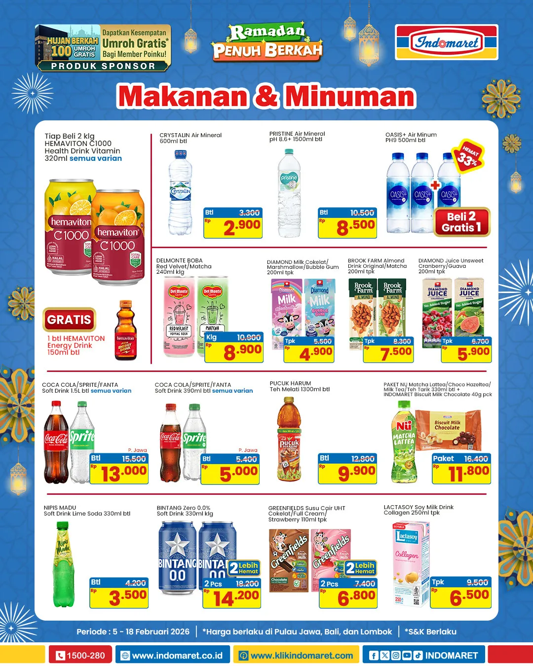 Melansir Instagram resmi Indomaret (@indomaret), inilah katalog promo Indomaret Super Hemat periode 5-18 Februari 2026: