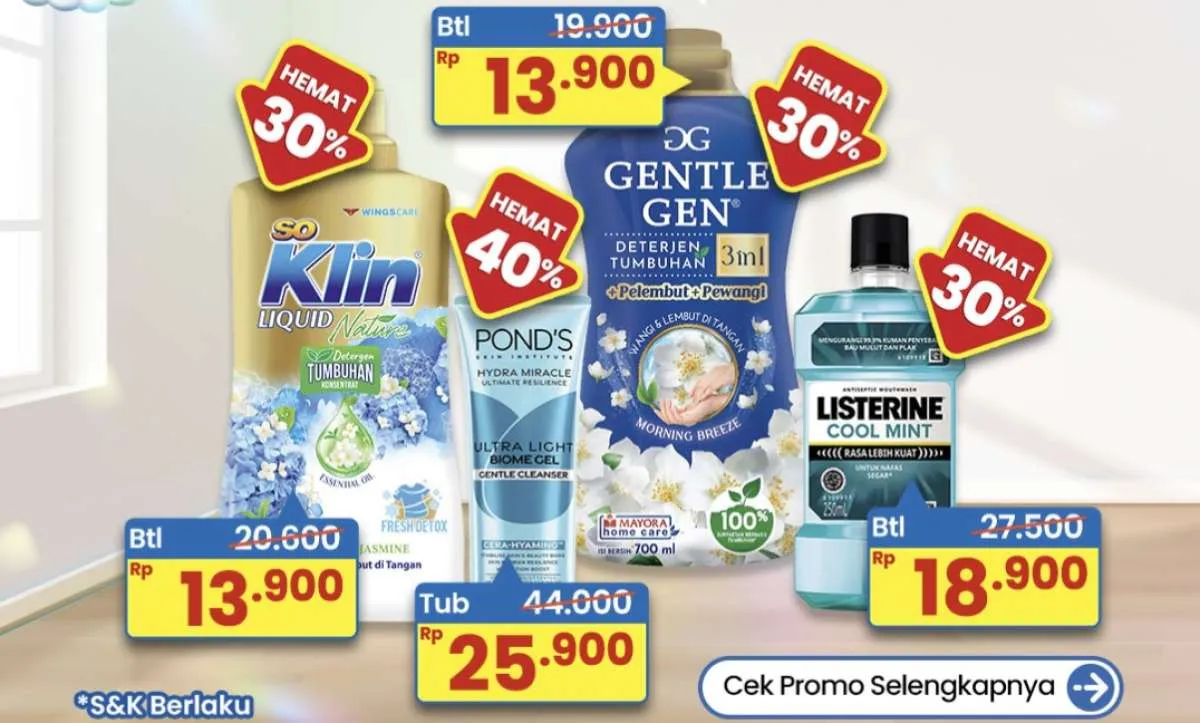 Sementara produk-produk dalam kategori Personal & Home Care juga tidak kalah melimpah. Ada banyak produk perawatan wajah dan tubuh yang ditawarkan pada promo Indomaret Super Hemat edisi ke-2.