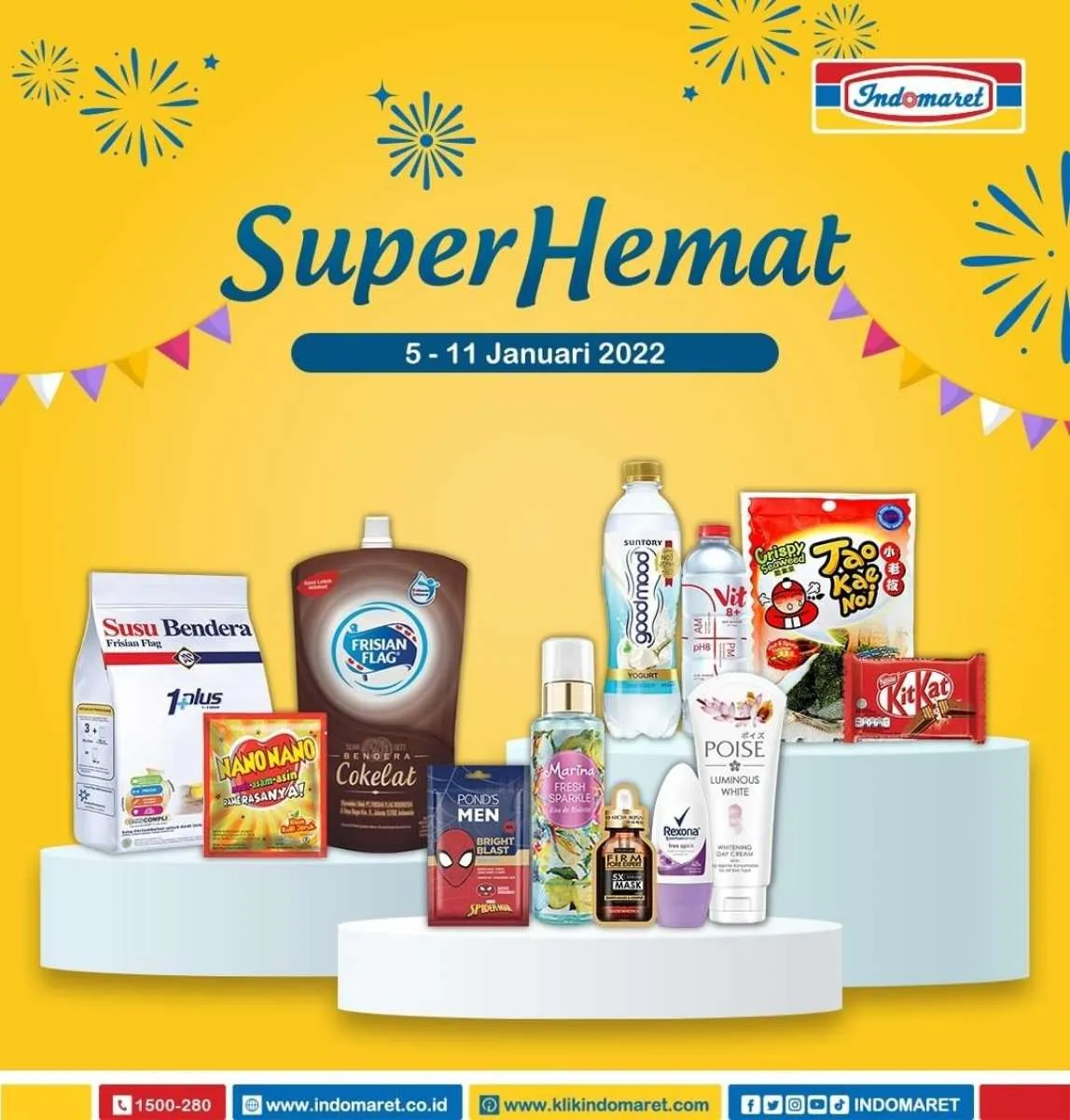 Memasuki edisi ke-1, promo Indomaret Super Hemat minggu ini berlaku tanggal 5-11 Januari 2022.
