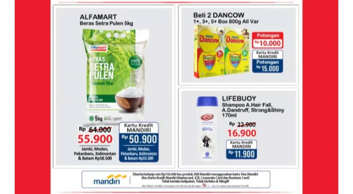 - Disertai belanja min. Rp 150.000 kecuali produk JSM Mandiri