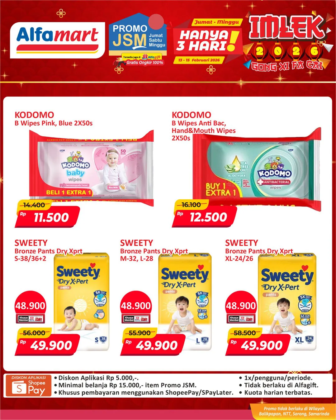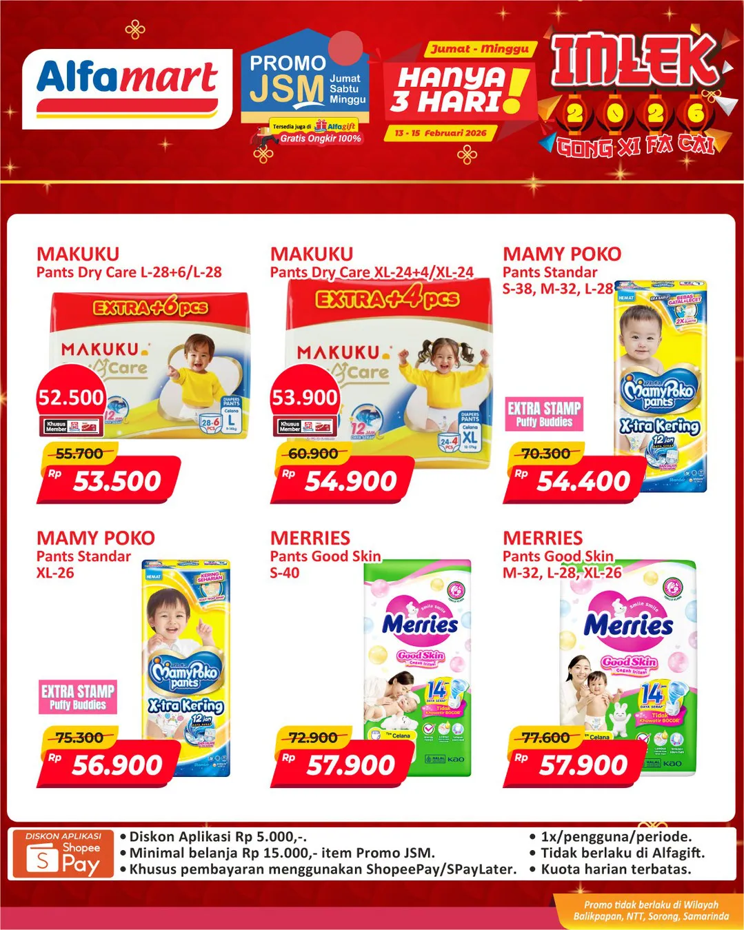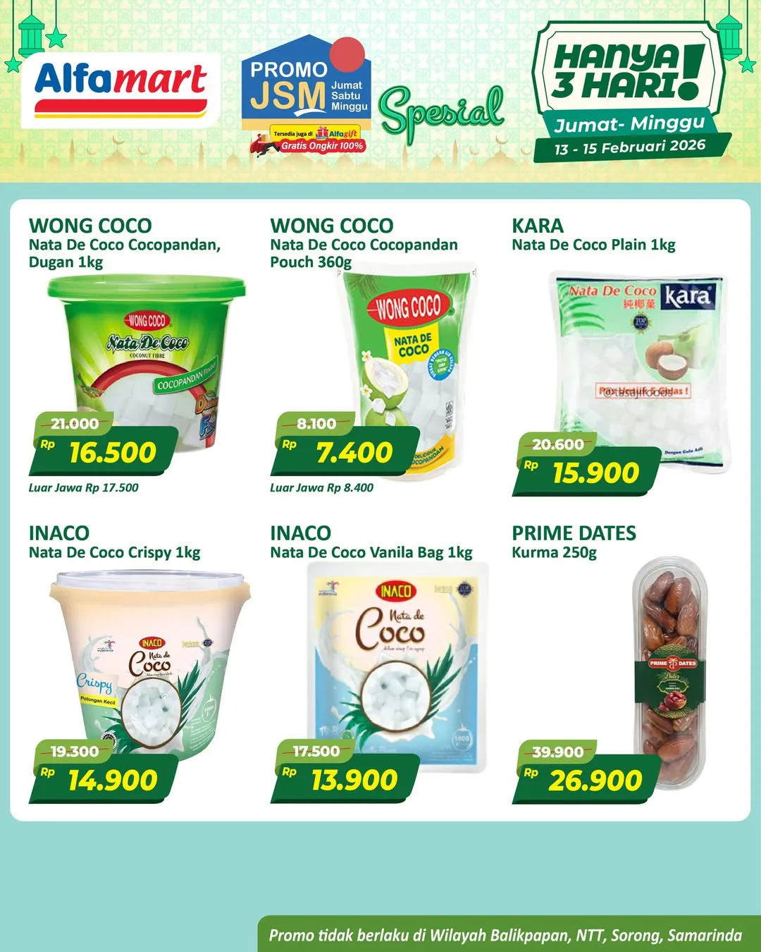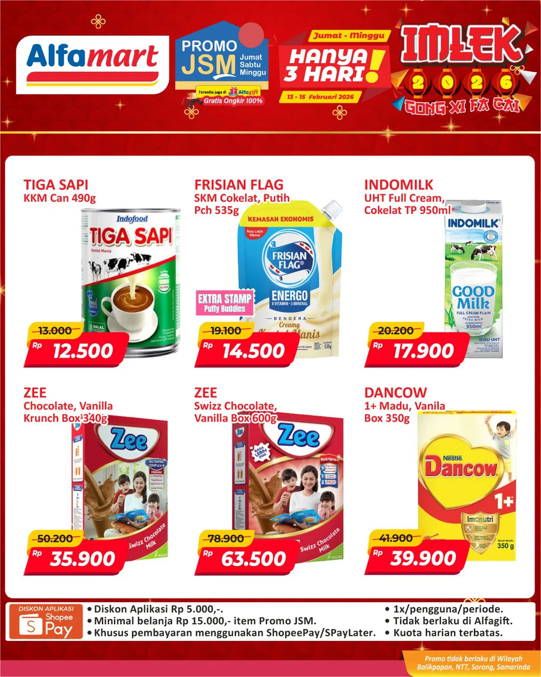 Harga promo JSM Alfamart periode 13-15 Februari 2026 tidak berlaku di wilayah NTT, Balikpapan, Samarinda, dan Sorong ya Moms.
