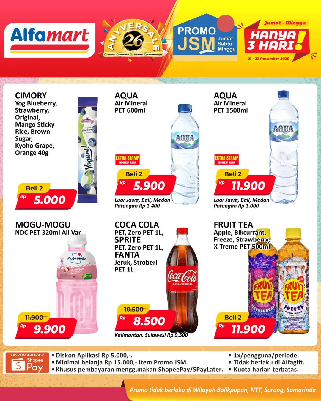 Harga promo JSM Alfamart periode 21-23 November 2025 tidak berlaku di wilayah NTT, Balikpapan, Samarinda, dan Sorong, ya, Moms.