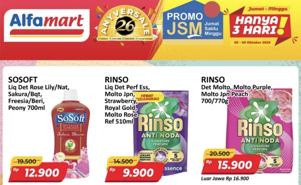 Nah, sekian informasi tentang promo JSM Alfamart periode 3-5 Oktober 2025. Semoga bermanfaat dan selamat berbelanja.
