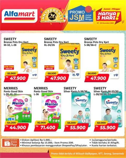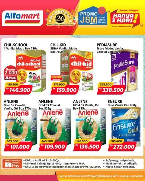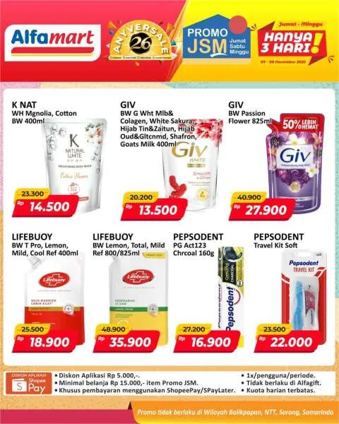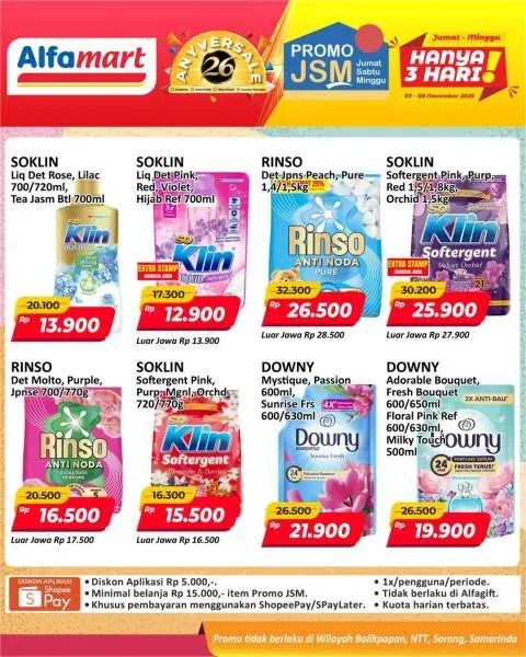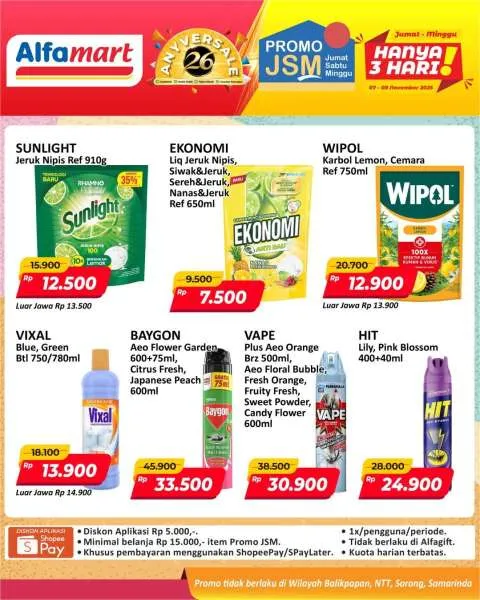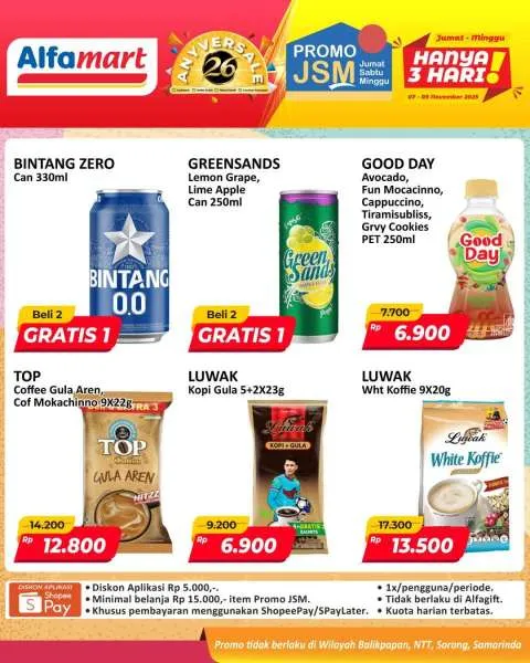 Harga promo JSM Alfamart periode 7-9 November 2025 tidak berlaku di wilayah NTT, Balikpapan, Samarinda, dan Sorong ya Moms.
