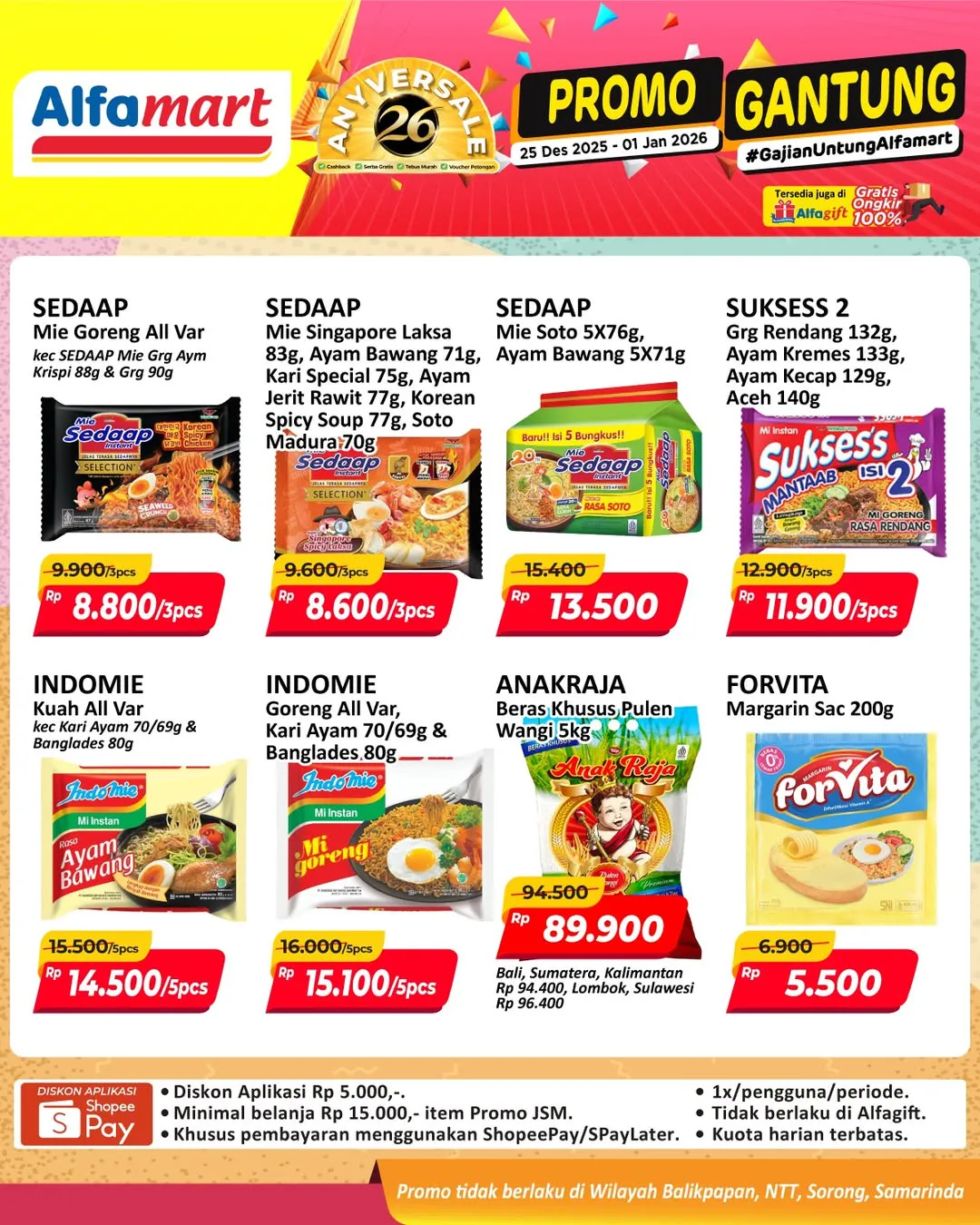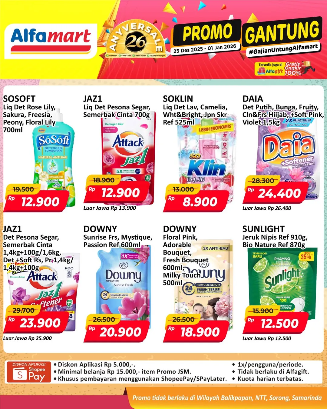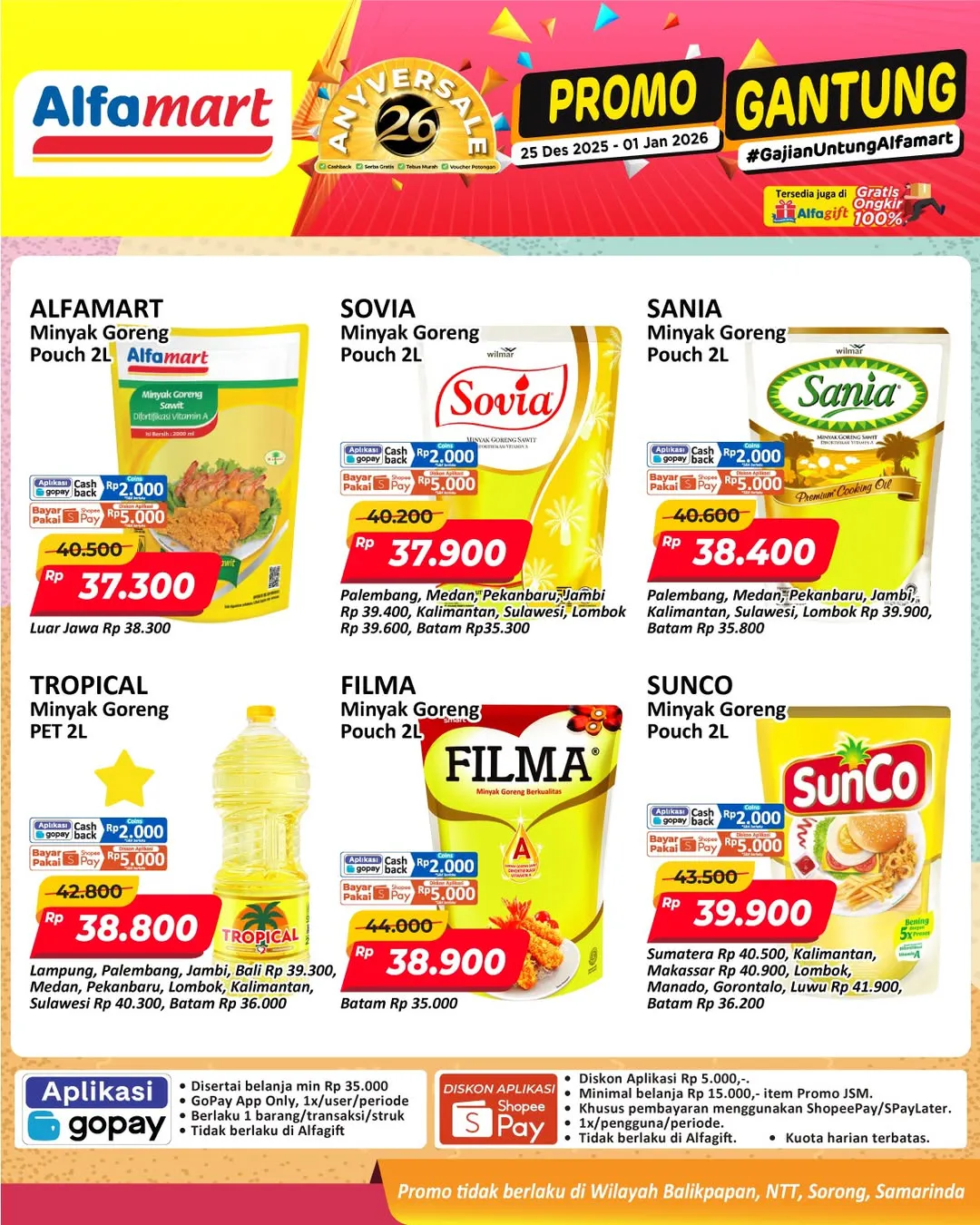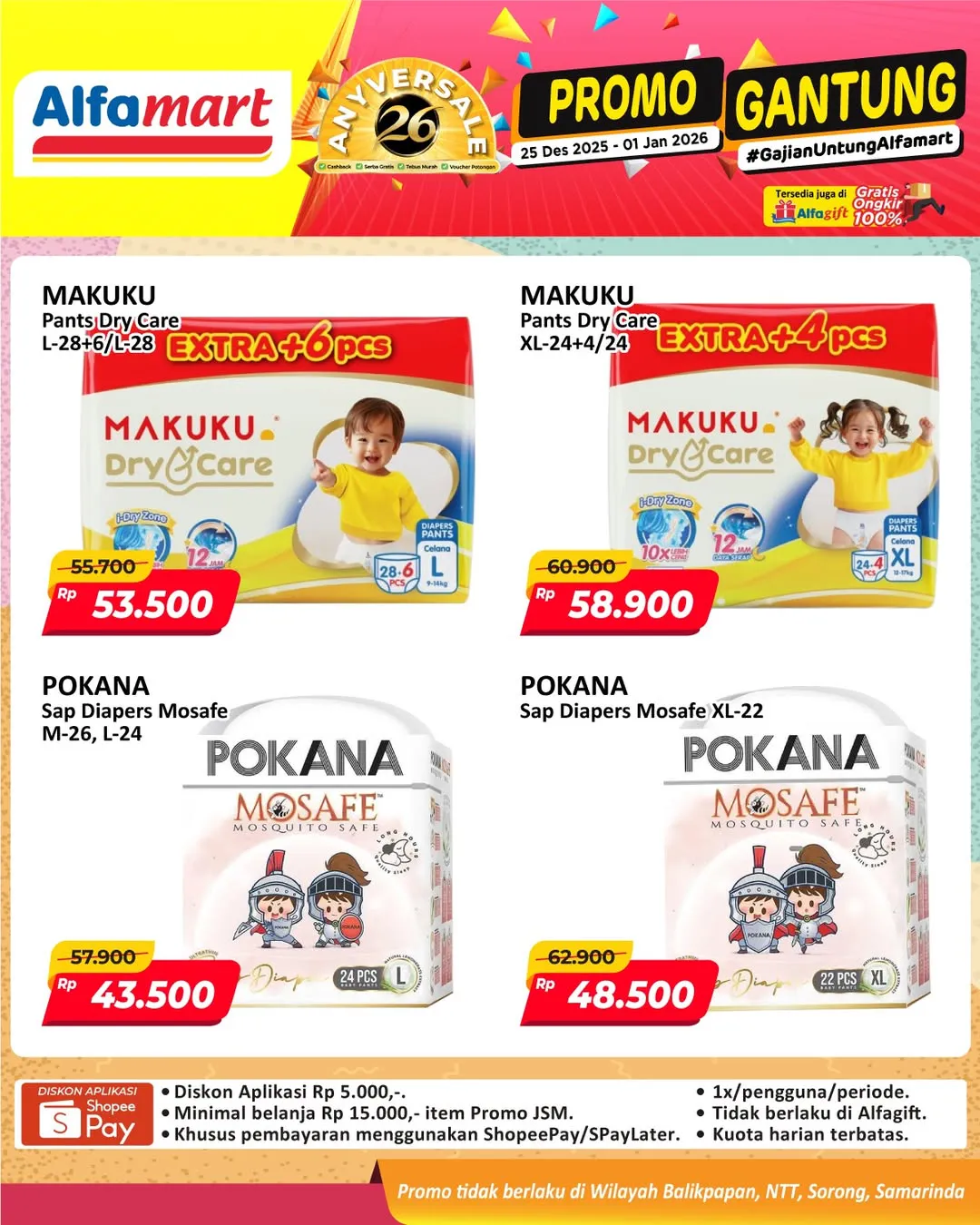 Harga promo JSM Alfamart Spesial Gajian periode 26-28 Desember 2025 tidak berlaku di wilayah NTT, Balikpapan, Samarinda, dan Sorong ya Moms.