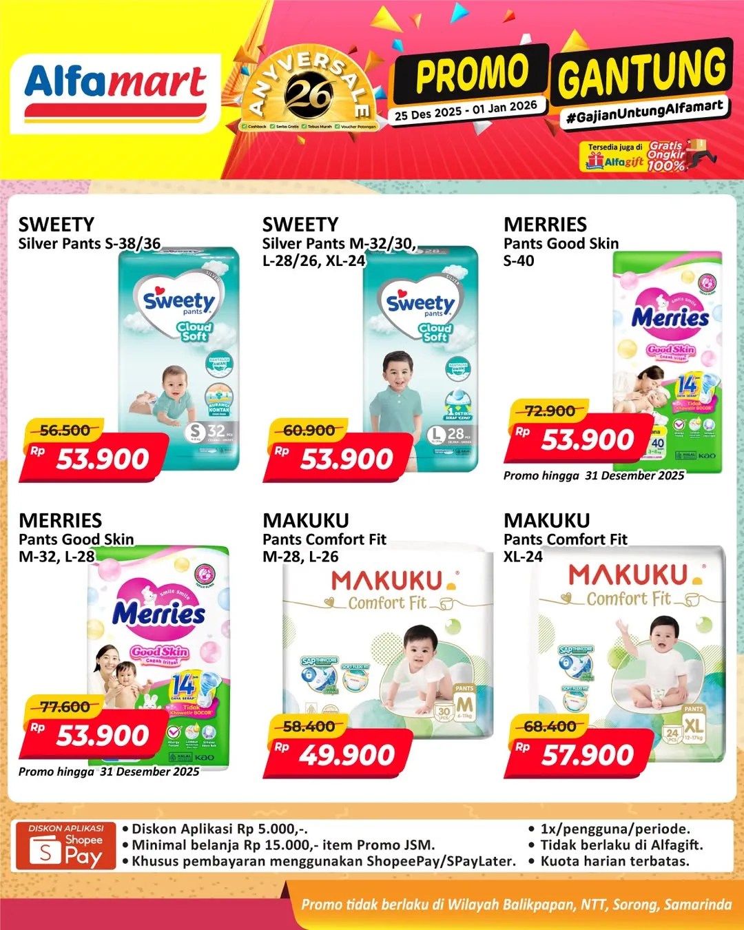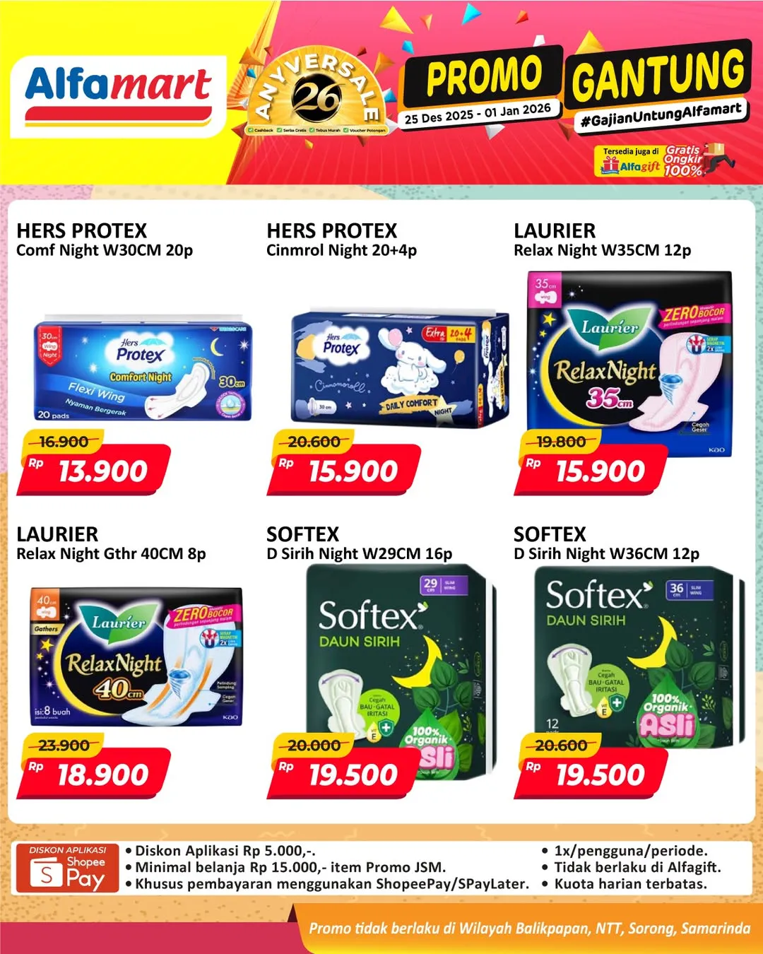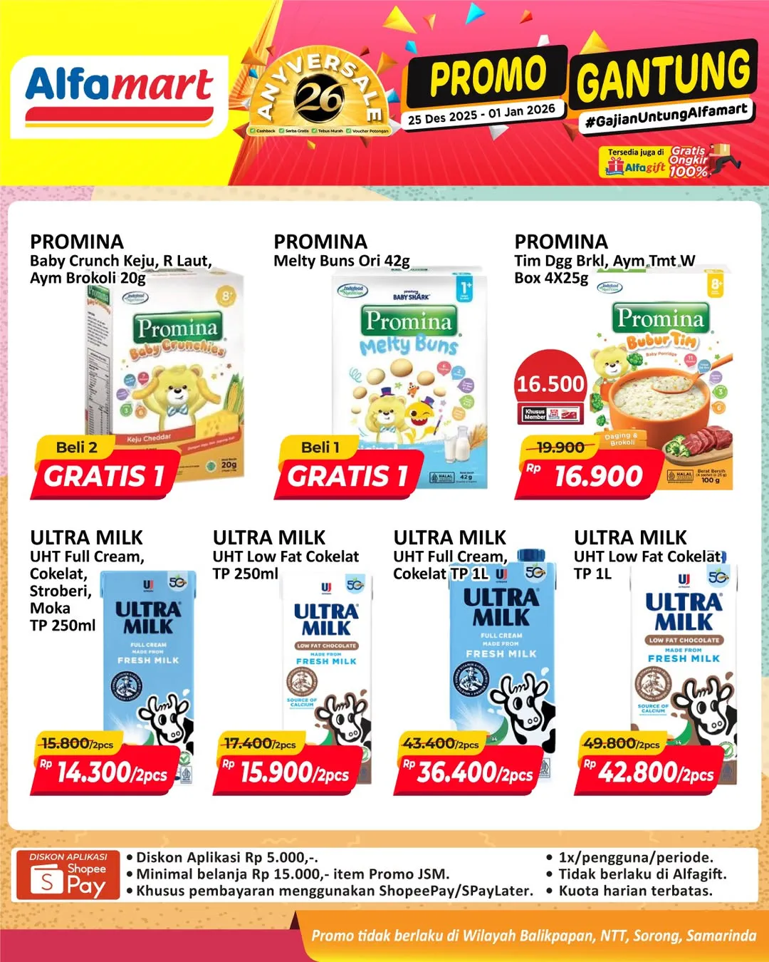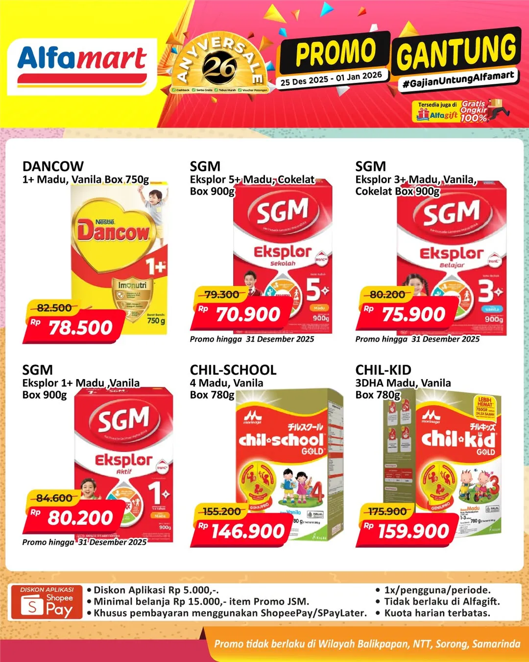 Harga promo JSM Alfamart Spesial Gajian periode 26-28 Desember 2025 tidak berlaku di wilayah NTT, Balikpapan, Samarinda, dan Sorong ya Moms.