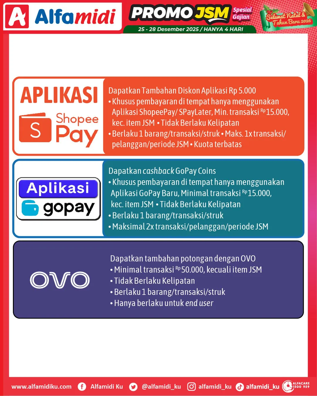 Sekian informasi promo JSM Alfamidi Spesial Gajian periode 25-28 Desember 2025. Semoga informasi promo Alfamidi ini bermanfaat dan jangan lupa untuk berbelanja dengan bijak, ya.