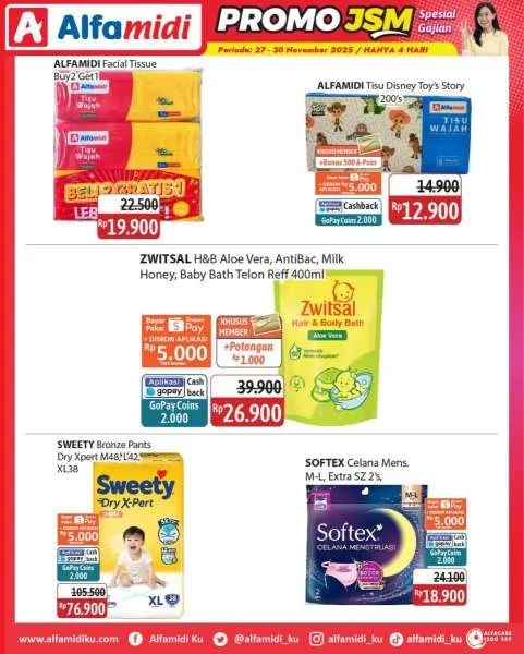 Itulah berbagai produk dalam promo JSM Alfamidi Spesial Gajian yang bisa Anda borong sampai tanggal 30 November 2025.