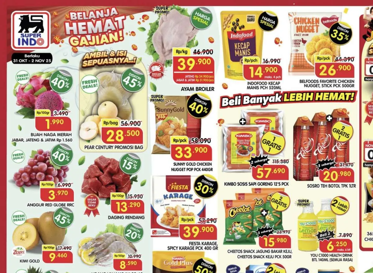 Selengkapnya, berikut katalog promo JSM Superindo periode 31 Oktober-2 November 2025 yang dilansir dari website resmi Superindo: