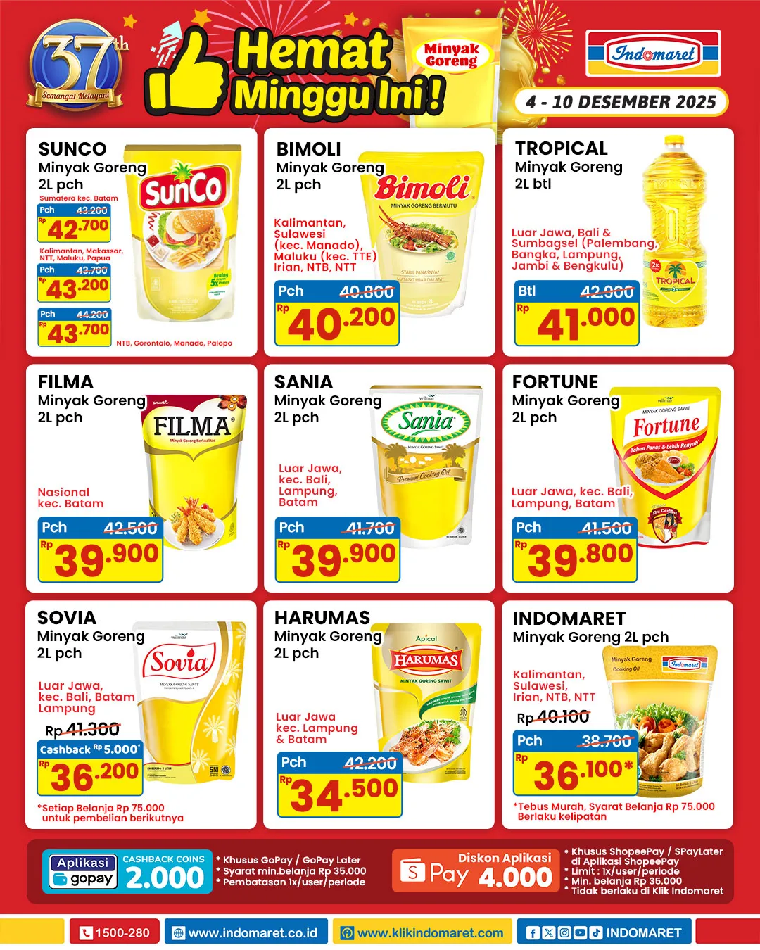 Melansir Instagram Indomaret (@indomaret), inilah katalog promo Indomaret Minyak Goreng Hemat periode 4-10 Desember 2025: /2025/12/05/919691869o.jpg)