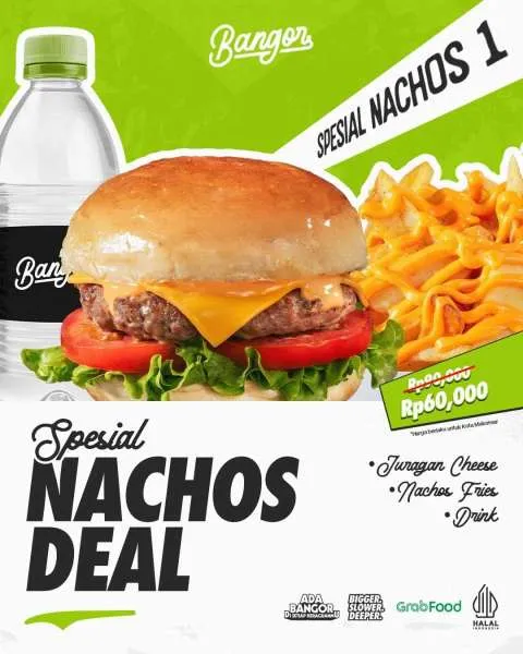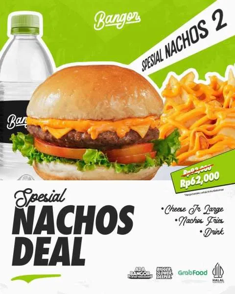 - Spesial Nachos 2 (Rp 62.000): Cheese Jr Large + Nachos Fries + Drink