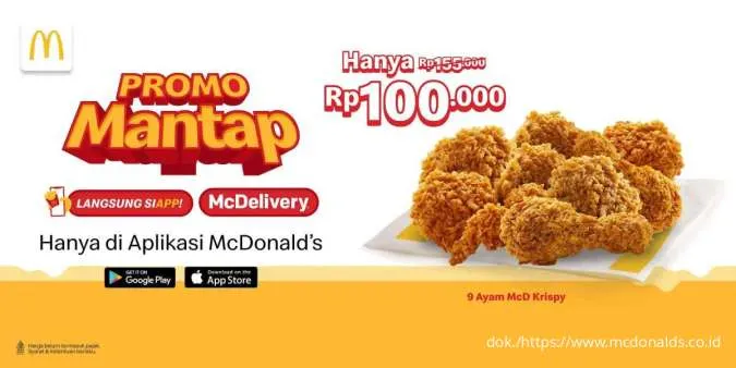 9 Ayam McD Krispy hanya Rp 100.000. Pemesanan melalui aplikasi McDonald's dengan layanan take away, dine-in, drive thru, dan delivery. /2026/01/06/591141346p.jpg)
