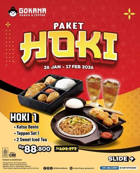 Dikutip dari Instagram @gokanaresto, hanya dengan Rp 88.800, Anda bisa menikmati Paket Hoki berikut: