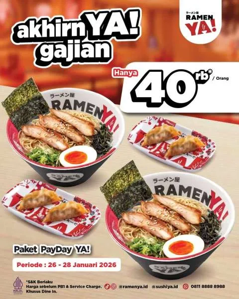 - Hanya berlaku dine in di seluruh outlet RamenYA!, RamenYA! x SushiYA dan SushiYA.