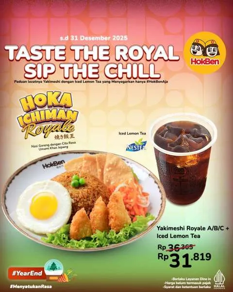 Selain itu, HokBen juga ada promo Taste the Royale, Sip the Chill yang siap manjakan lidah Anda selama Desember 2025 ini. Paket komplitnya cuma Rp 31.000-an saja lo.