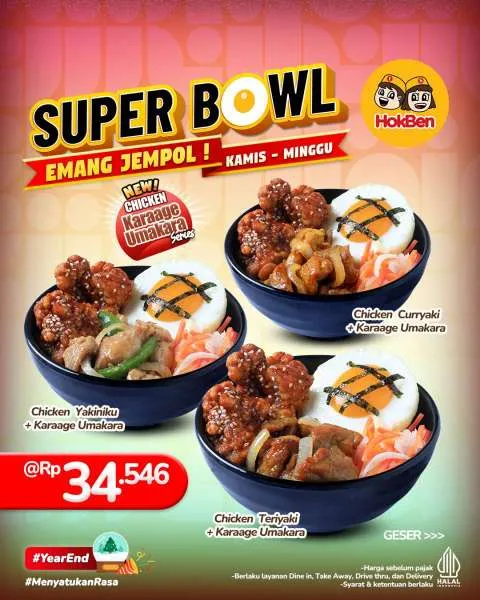 Yuk, serbu promonya di HokBen terdekat dan nikmati Super Bowl favorit Anda yang hemat sebelum kehabisan!