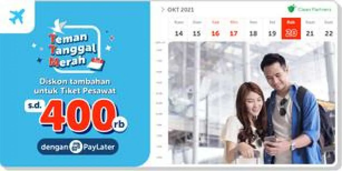 MOMSMONEY.ID - Moms manfaatkan diskon tambahan tiket pesawat dari Traveloka. Nikmati diskon pesawat hingga Rp400.000 dari PayLater untuk terbang ke destinasi favorit Anda. Periode promo ini berlangsung hingga 24 Oktober 2021. Segera gunakan kesempatan ini untuk berlibur bersama keluarga. Baca info selengkapnya di bawah ini.
