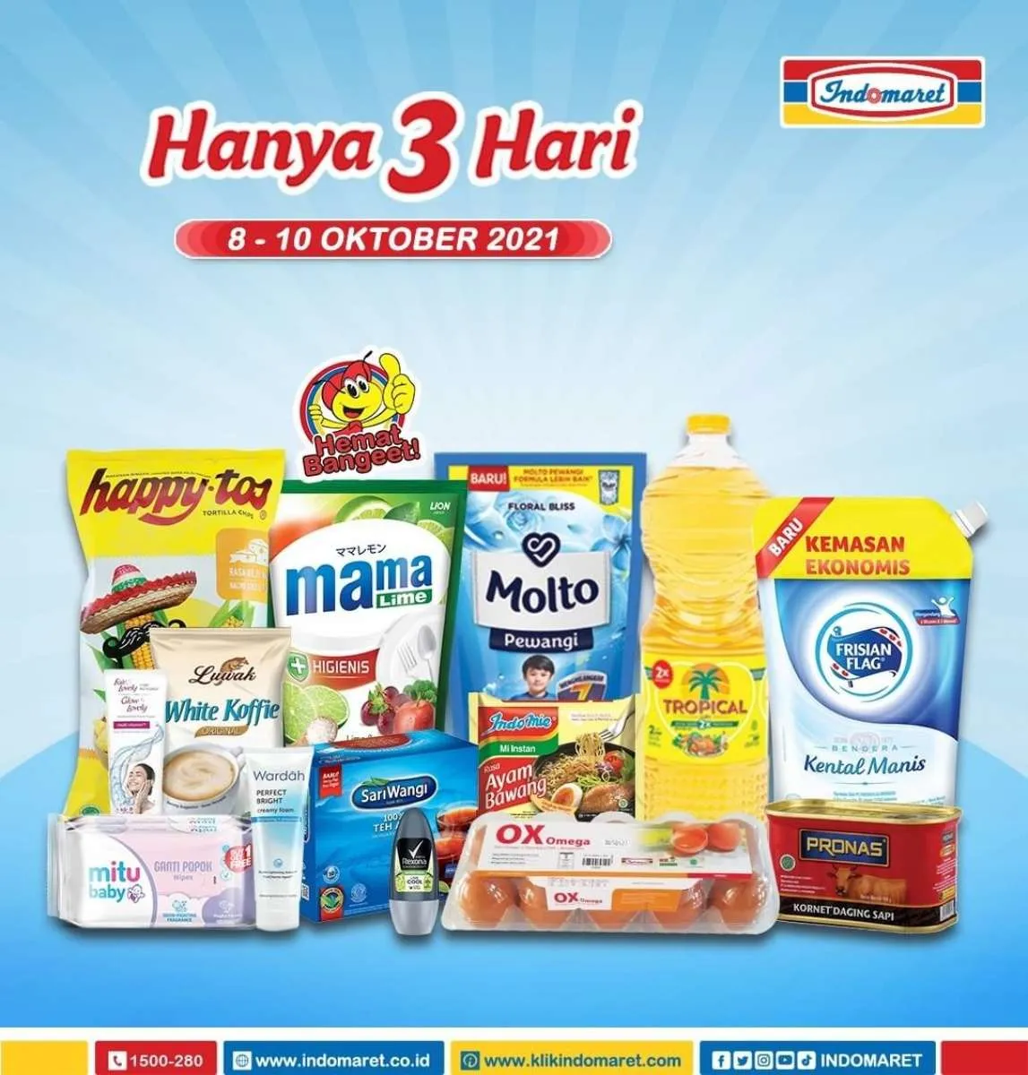 Melansir instagram Indomaret (@indomaret), inilah katalog Promo Indomaret Hanya 3 Hari Periode 8-10 Oktober 2021: