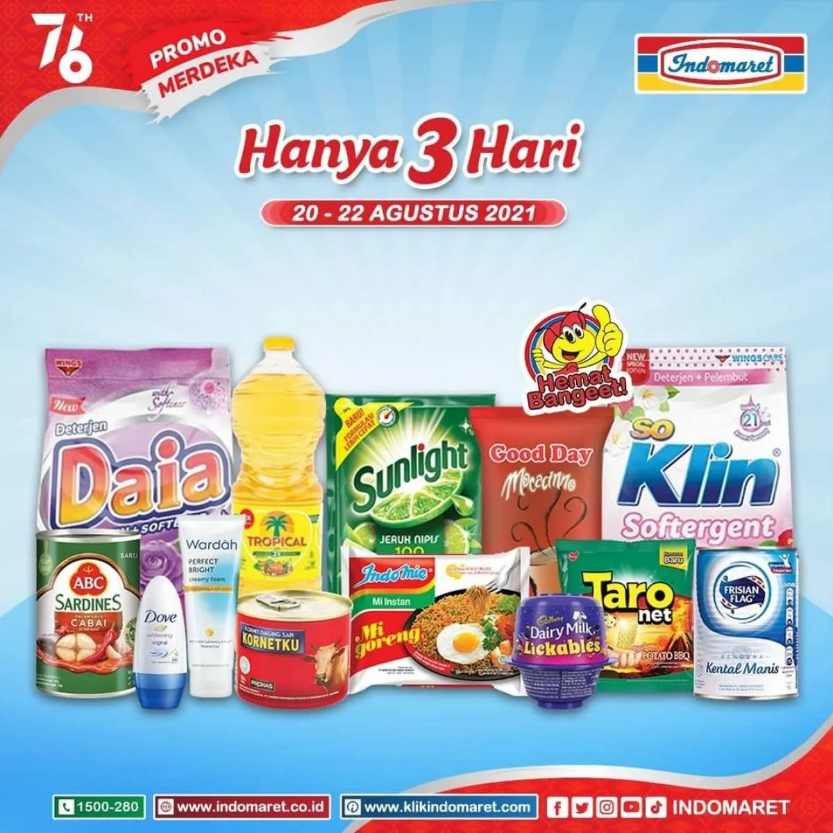 Melansir instagram Indomaret (@indomaret), inilah katalog Promo Merdeka Indomaret Hanya 3 Hari Periode 20-22 Agustus 2021: