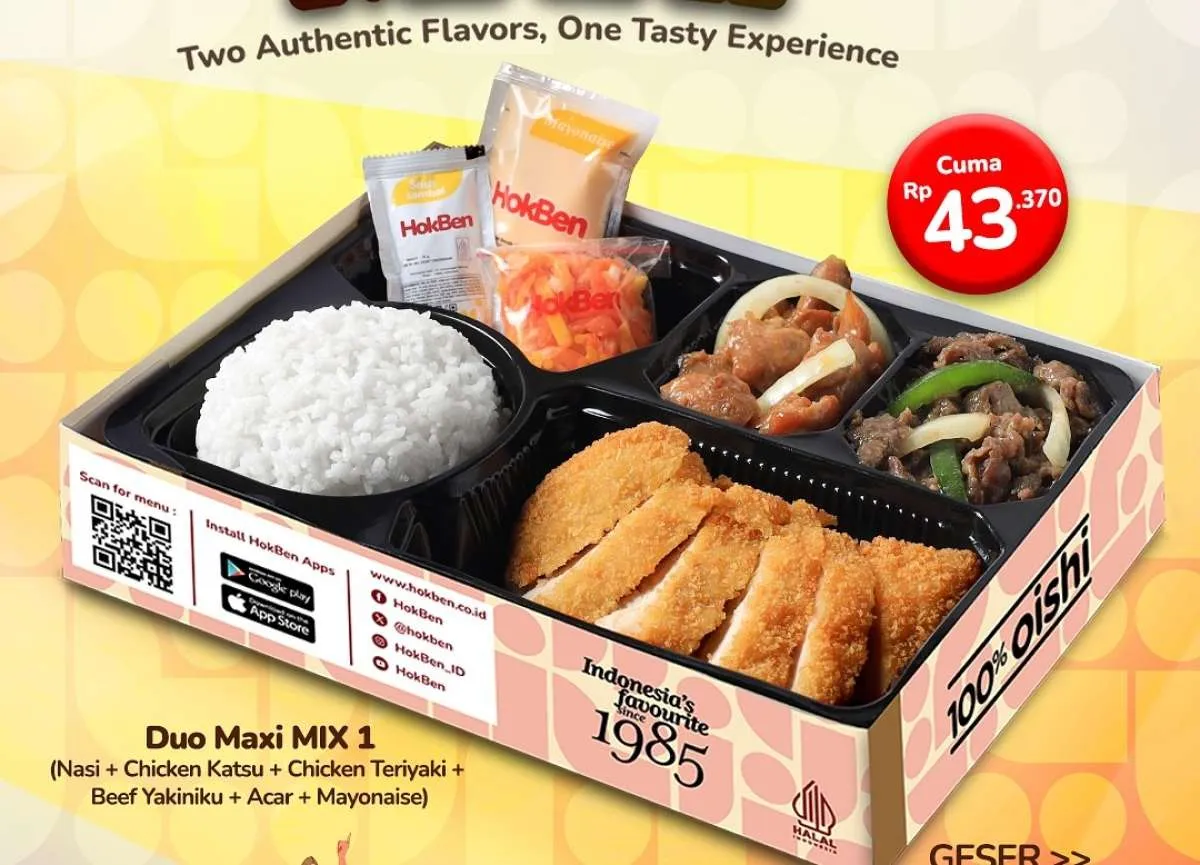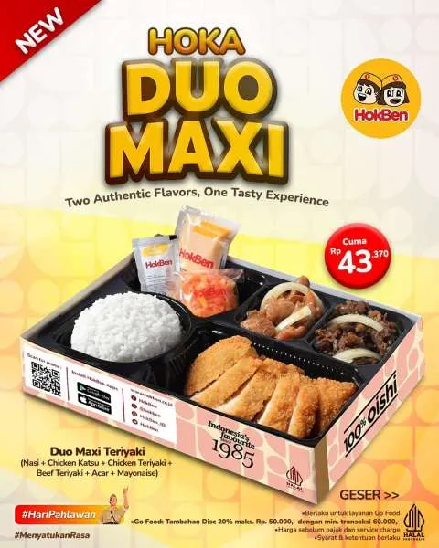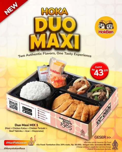 MOMSMONEY.ID - Ada yang baru dari HokBen lo. Kini Anda bisa menikmati promo Hokben Hoka Duo Maxi yang spesial dan lengkap banget. Tersedia empat pilihan Hoka Duo Maxi hanya Rp 43.000-an.