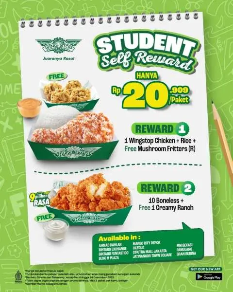 MOMSMONEY.ID - Buat Anda para pelajar yang ingin jajan enak, hemat, dan ngenyangin, buruan ke Wingstop sekarang! Ada promo Wingstop Student Self Reward dengan paket hematnya hanya Rp 20.000-an saja.