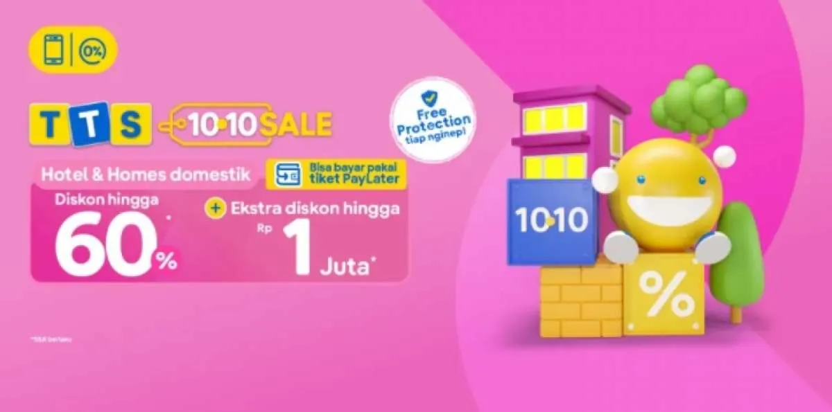 MOMSMONEY.ID - Jangan ketinggalan promo 10.10 dari tiket.com. Saatnya rehat sejenak di hotel & Homes domestik favorit Anda dan dapatkan pengalaman staycation baru bersama keluarga. Nikmati Ten Ten Sale 10.10 hingga 60% dan ekstra diskon hingga Rp1.000.000 untuk nginep di hotel atau Homes domestik pilihan.