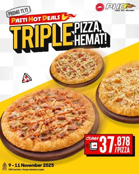 Di November ini jangan lupa ya kalau ada promo 11.11 yang siap memanjakan Anda dengan menu spesial. Salah satunya dari PHD dengan paket tiga Pizza favorit yang cocok banget untuk menemani momen kumpul bareng sahabat atau traktir keluarga.