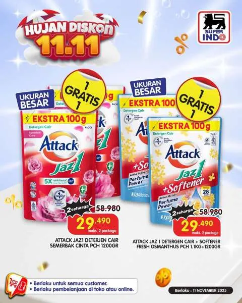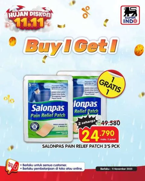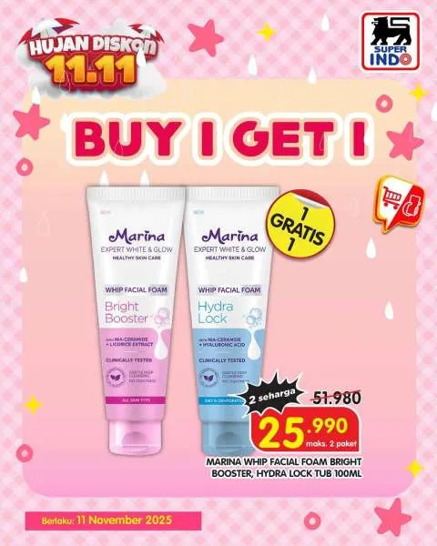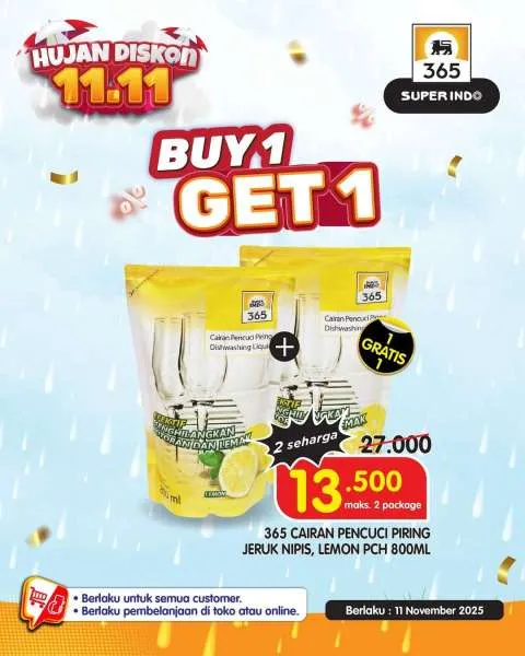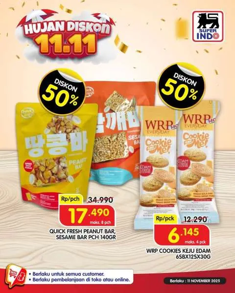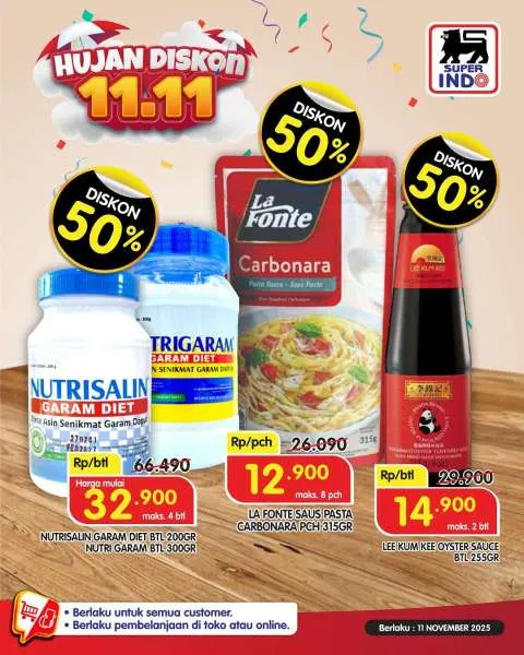 Berlaku 11 November 2025, promo 11.11 Superindo menawarkan beragam produk yang dibanderol dengan Diskon 50% dan Beli 1 Gratis 1.