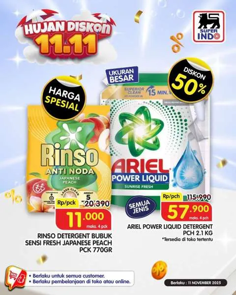 Selengkapnya, berikut katalog promo 11.11 Superindo periode 11 November 2025 yang dilansir dari Instagram Superindo: Promo 11.11 Superindo Periode 11 November 2025