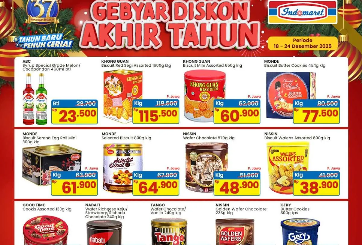 Berlaku 18-24 Desember 2025, promo ini menawarkan harga spesial untuk berbagai merek biskuit kaleng. Ada Khong Guan, Monde, hingga Gery.