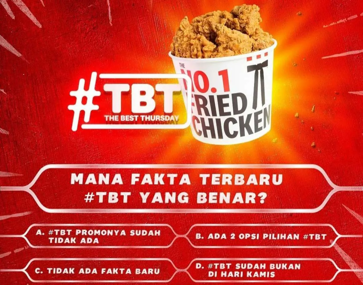 Selamat menikmati paket terbaru Promo The Best Thursday (TBT) dari KFC yang satu ini!