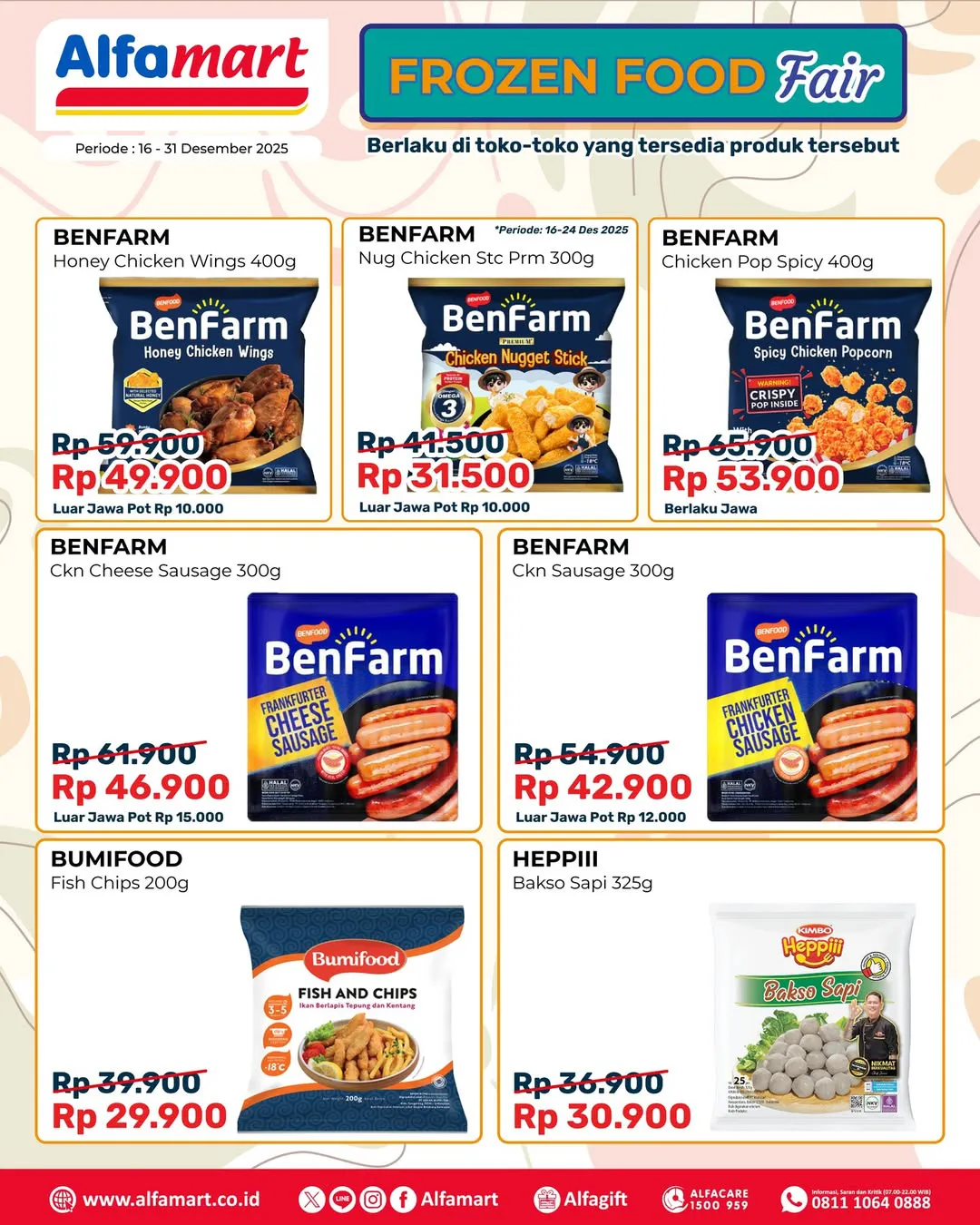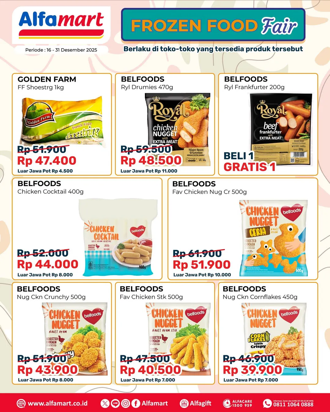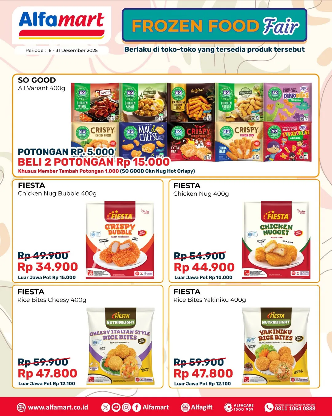 Selain lengkap, Alfamart juga kerap mengadakan promo. Selama 16-31 Desember 2025, ada promo Frozen Food Fair dari Alfamart yang menawarkan berbagai merek nugget dan sosis dengan harga lebih ekonomis.