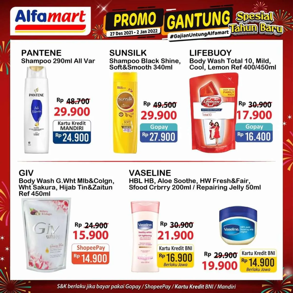 Mulai hari ini tanggal 27 Desember 2021-2 Januari 2022 mendatang, ada promo Alfamart bernama Gantung (Gajian Untung) yang menawarkan berbagai produk personal care, produk bersih-bersih, makanan dan minuman, hingga kebutuhan anak dengan harga murah meriah untuk menyemarakkan waktu gajian Anda.