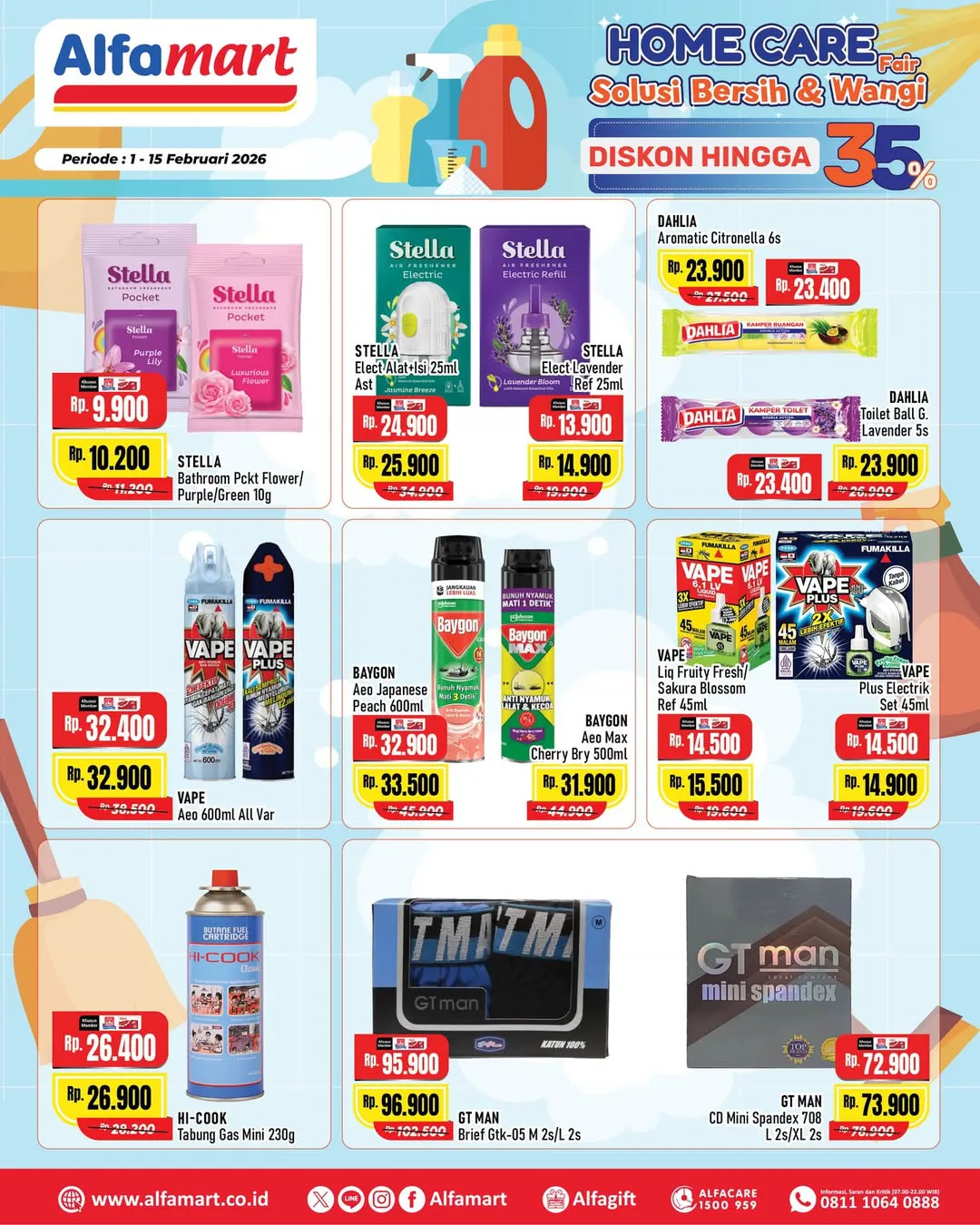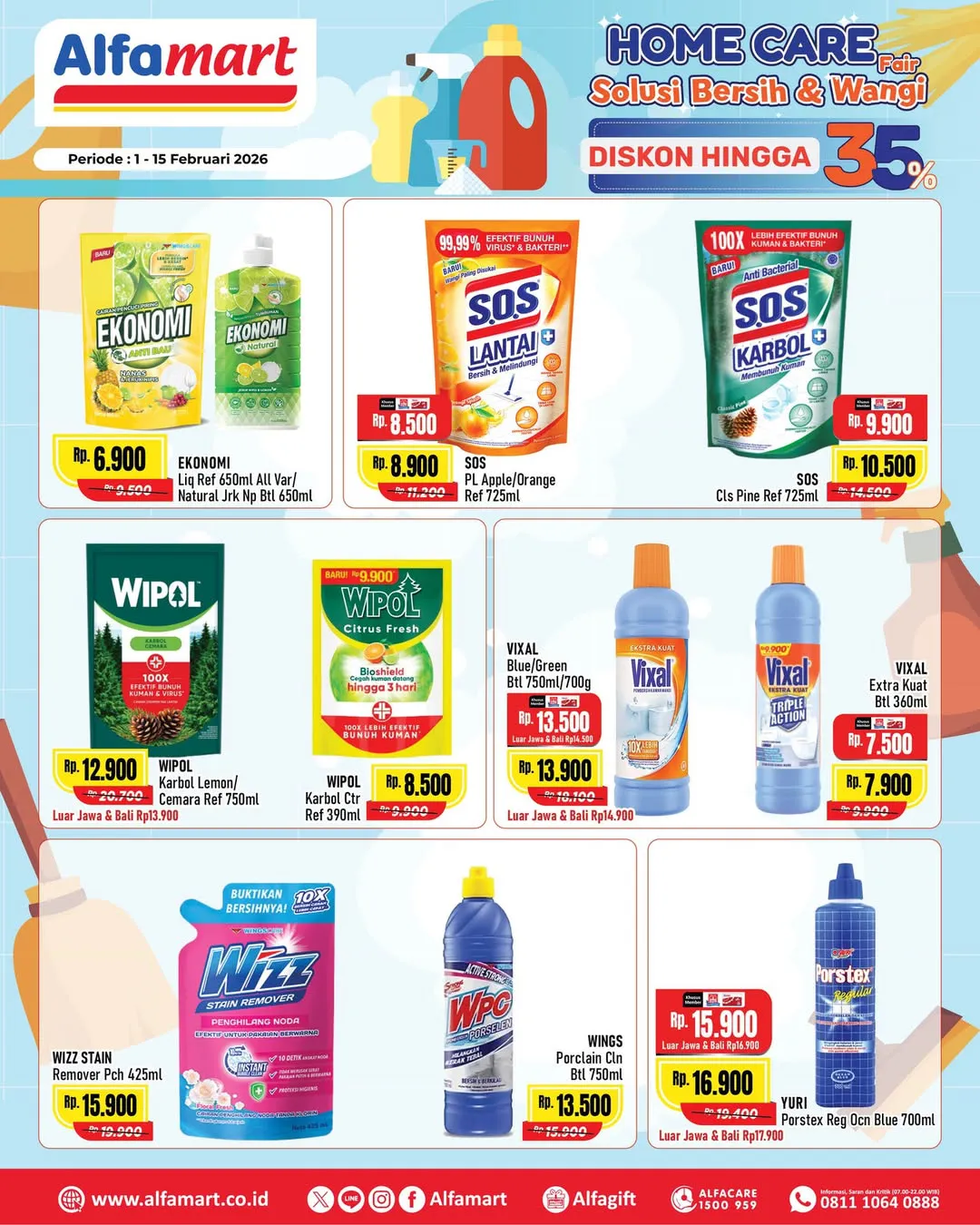 Selama 1-15 Februari 2026, ada promo Home Care dari Alfamart yang menawarkan berbagai kebutuhan rumah tangga dengan Diskon hingga 35%.