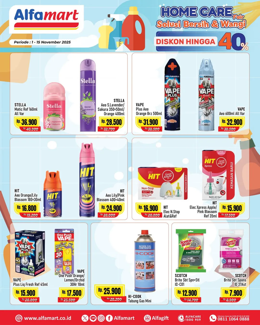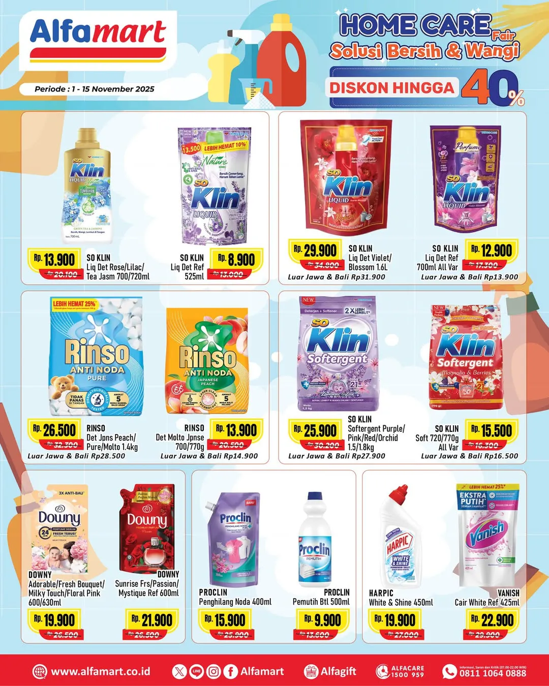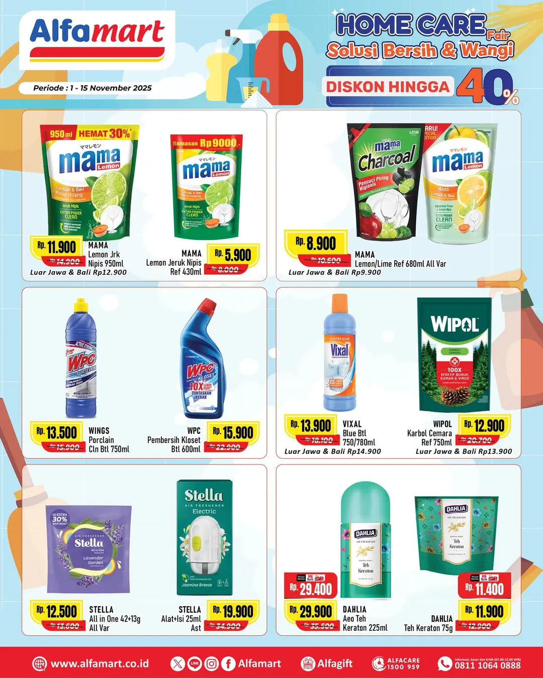 Selama 1-15 November 2025, ada promo Home Care dari Alfamart yang menawarkan berbagai kebutuhan rumah tangga dengan Diskon hingga 40%.