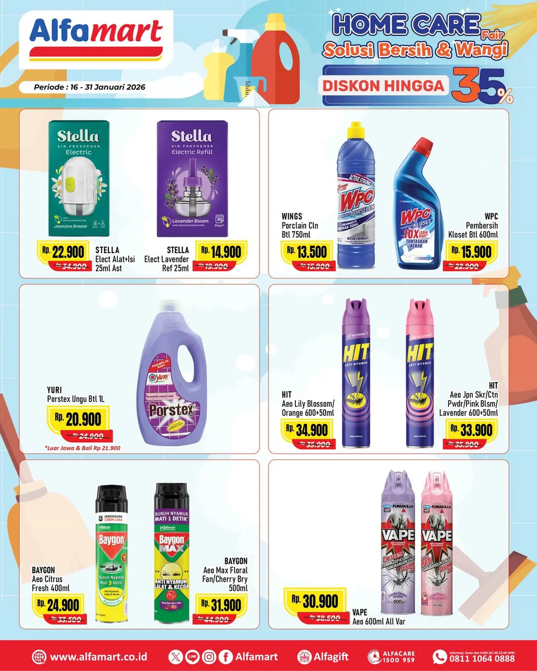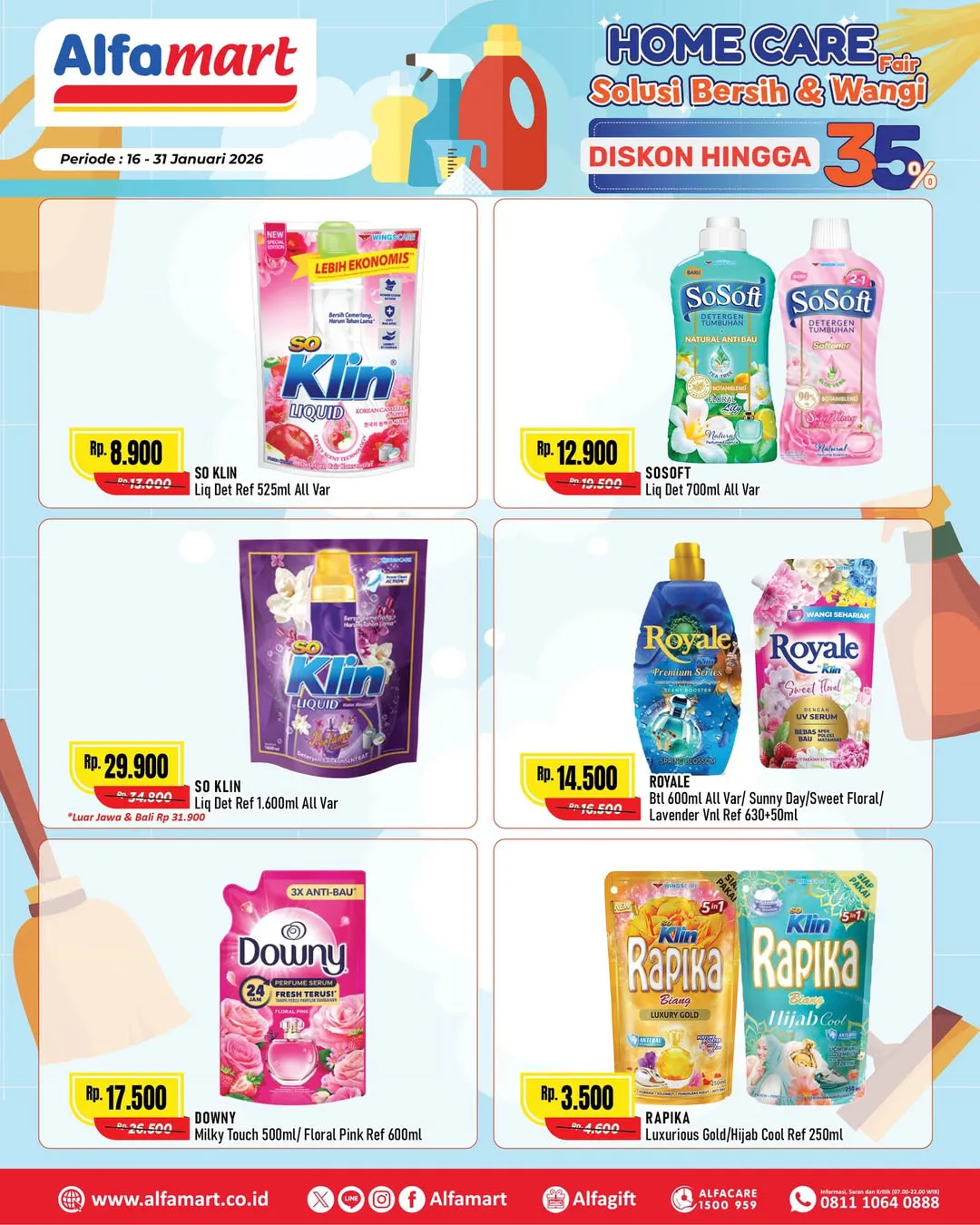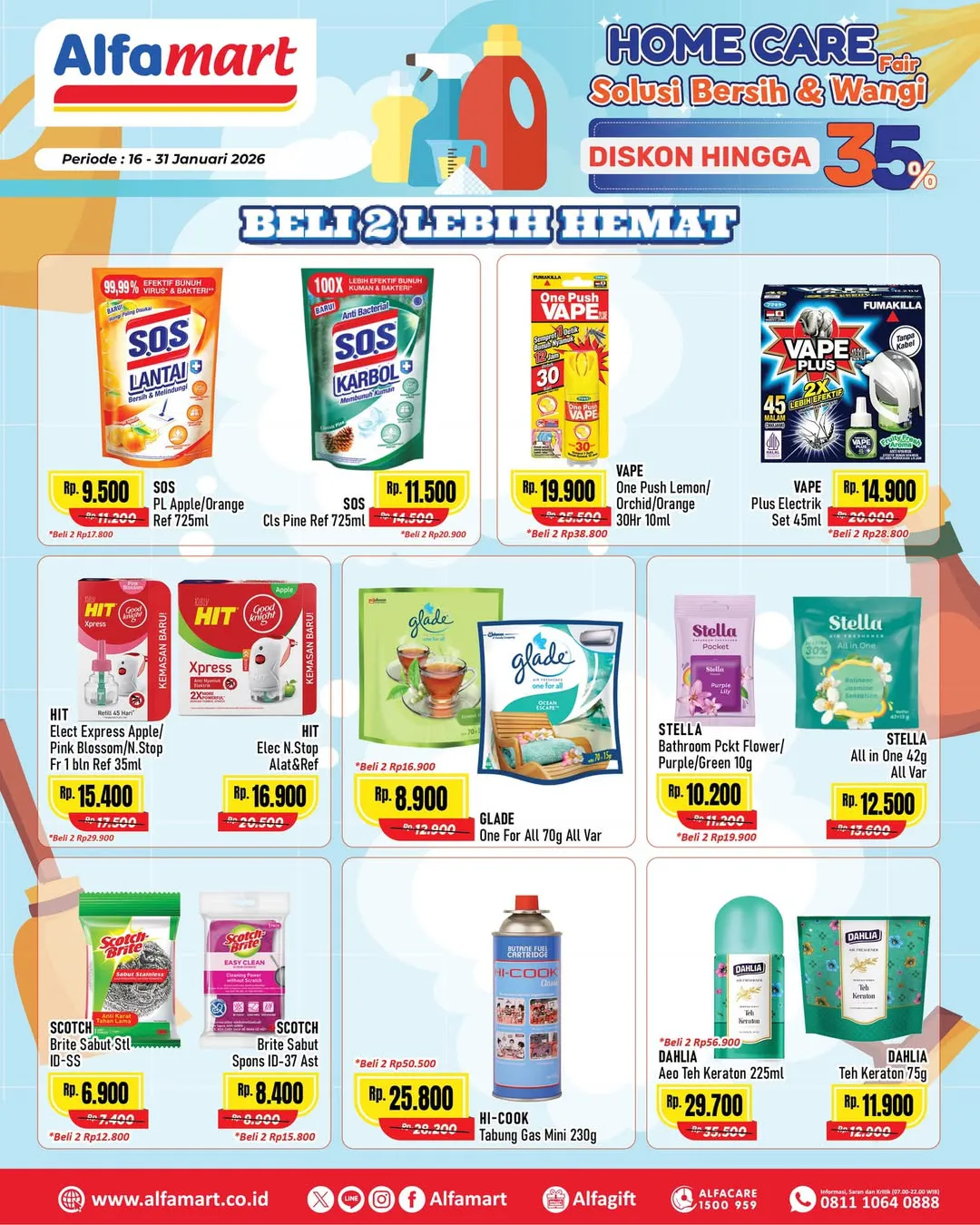Selain lengkap, Alfamart juga kerap mengadakan promo dengan potongan harga. Selama 16-31 Januari 2026, ada promo Home Care dari Alfamart yang menawarkan berbagai kebutuhan rumah tangga dengan Diskon hingga 35%.