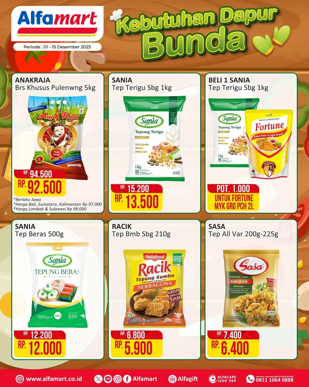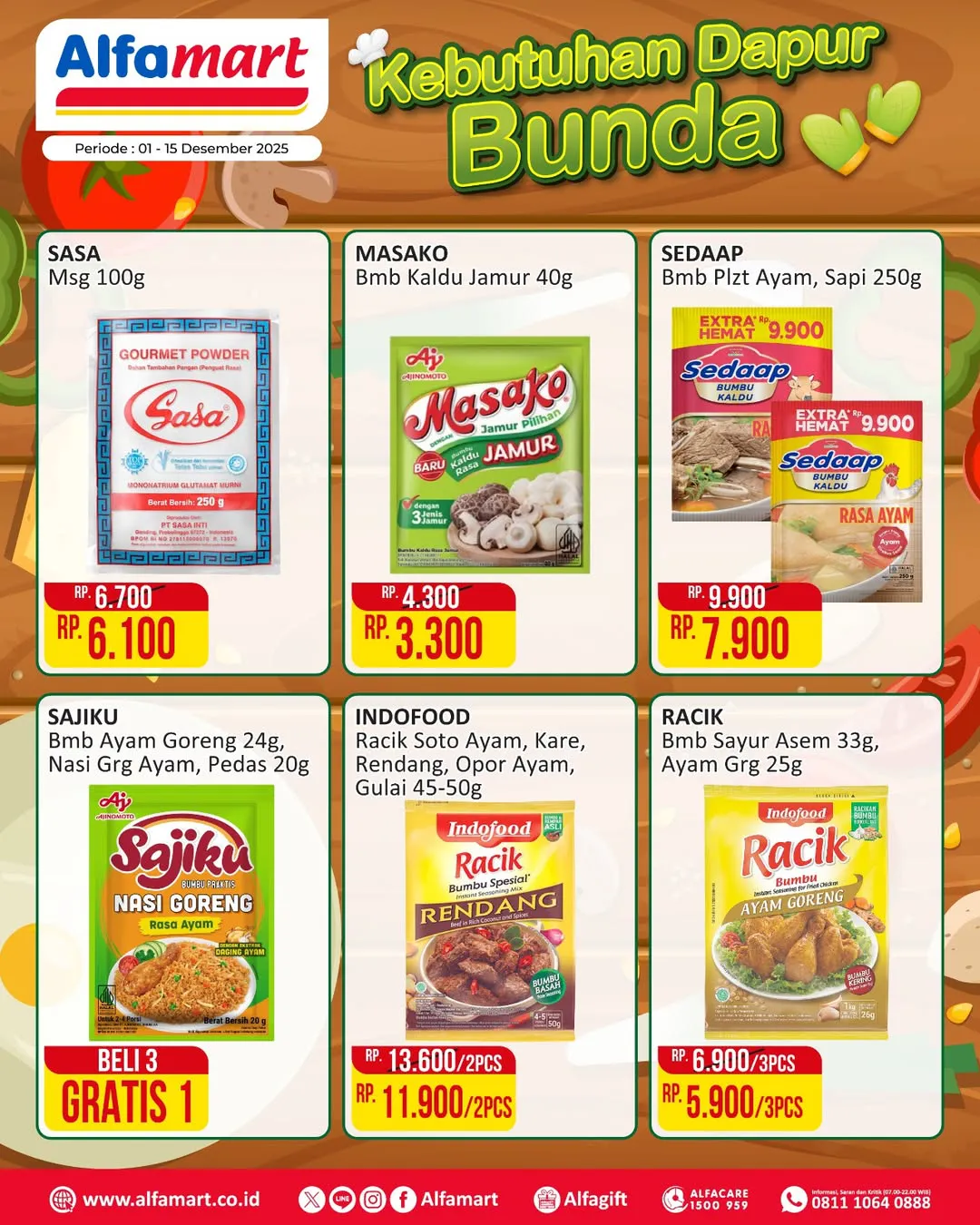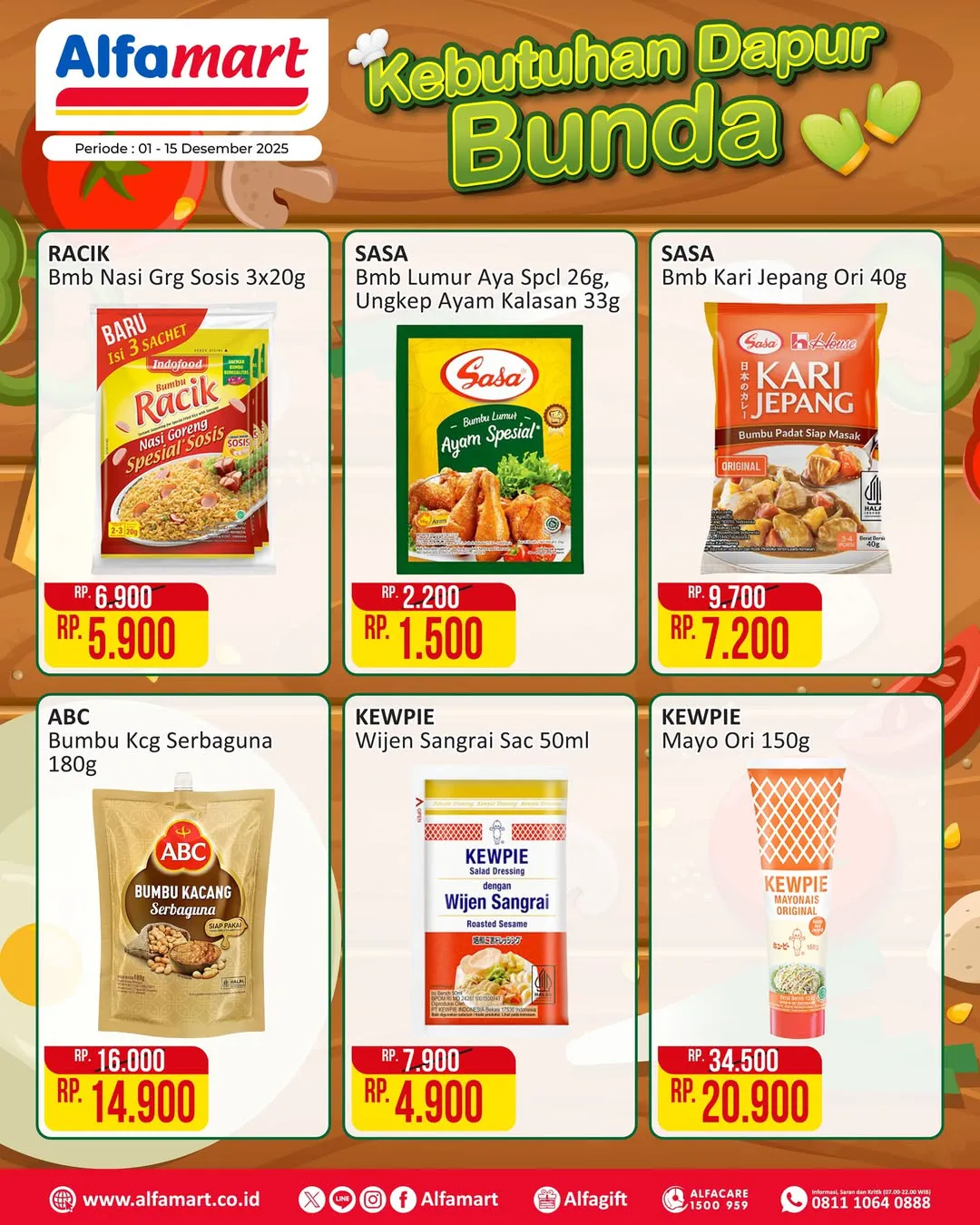 Selama 1-15 Desember 2025, ada promo Kebutuhan Dapur dari Alfamart yang menawarkan berbagai kebutuhan dapur dengan harga ekonomis.