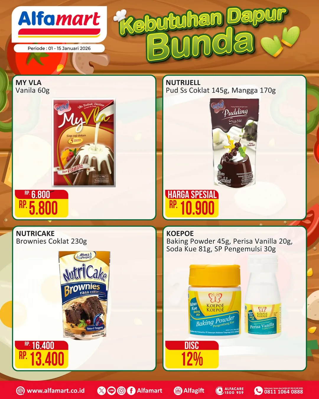 Selama 1-15 Januari 2026, ada promo Kebutuhan Dapur dari Alfamart yang menawarkan berbagai kebutuhan dapur dengan harga ekonomis.