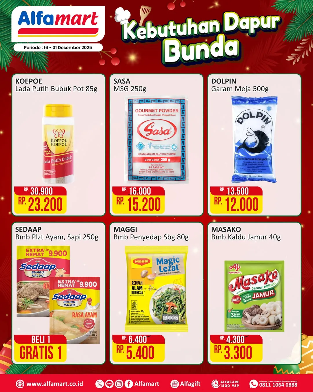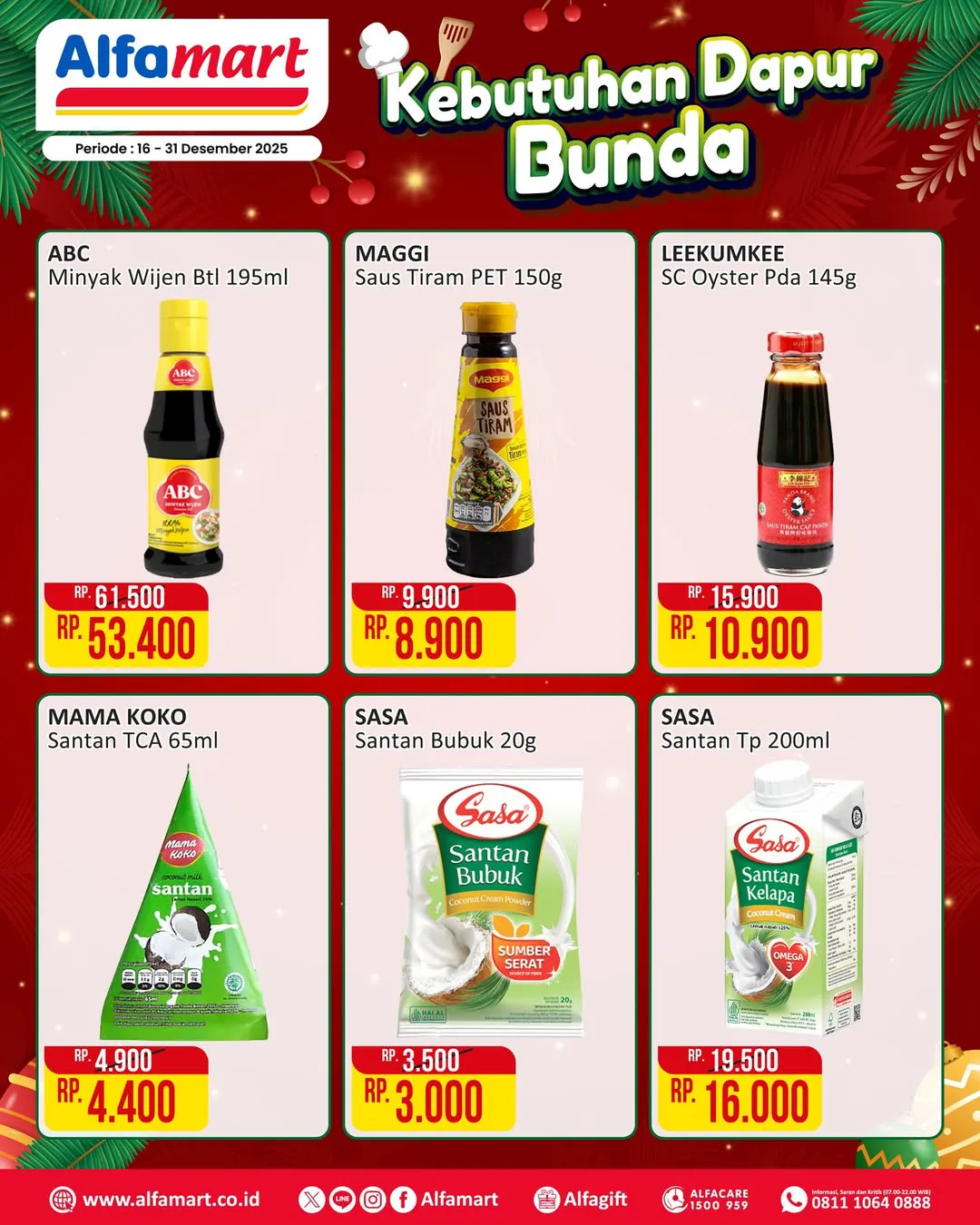 Selain lengkap, Alfamart juga kerap mengadakan promo dengan potongan harga. Selama 16-31 Desember 2025, ada promo Kebutuhan Dapur dari Alfamart yang menawarkan berbagai kebutuhan dapur dengan harga ekonomis.