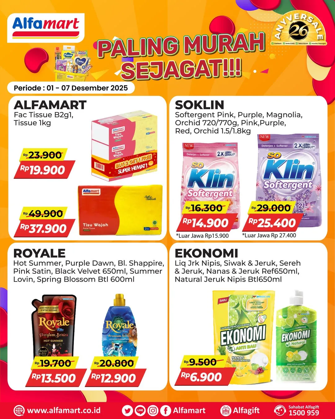 Selama 1-4 Desember 2025, ada promo Paling Murah Sejagat dari Alfamart yang menawarkan berbagai produk dengan harga jauh lebih ekonomis.