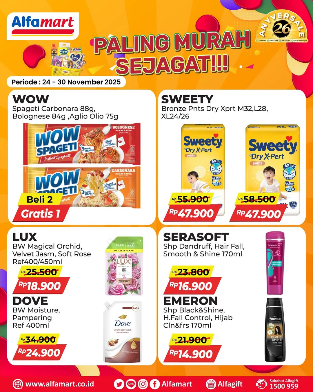 Selain lengkap, Alfamart juga kerap mengadakan promo dengan potongan harga. Selama 24-30 November 2025, ada promo Paling Murah Sejagat dari Alfamart yang menawarkan berbagai produk dengan harga jauh lebih ekonomis.