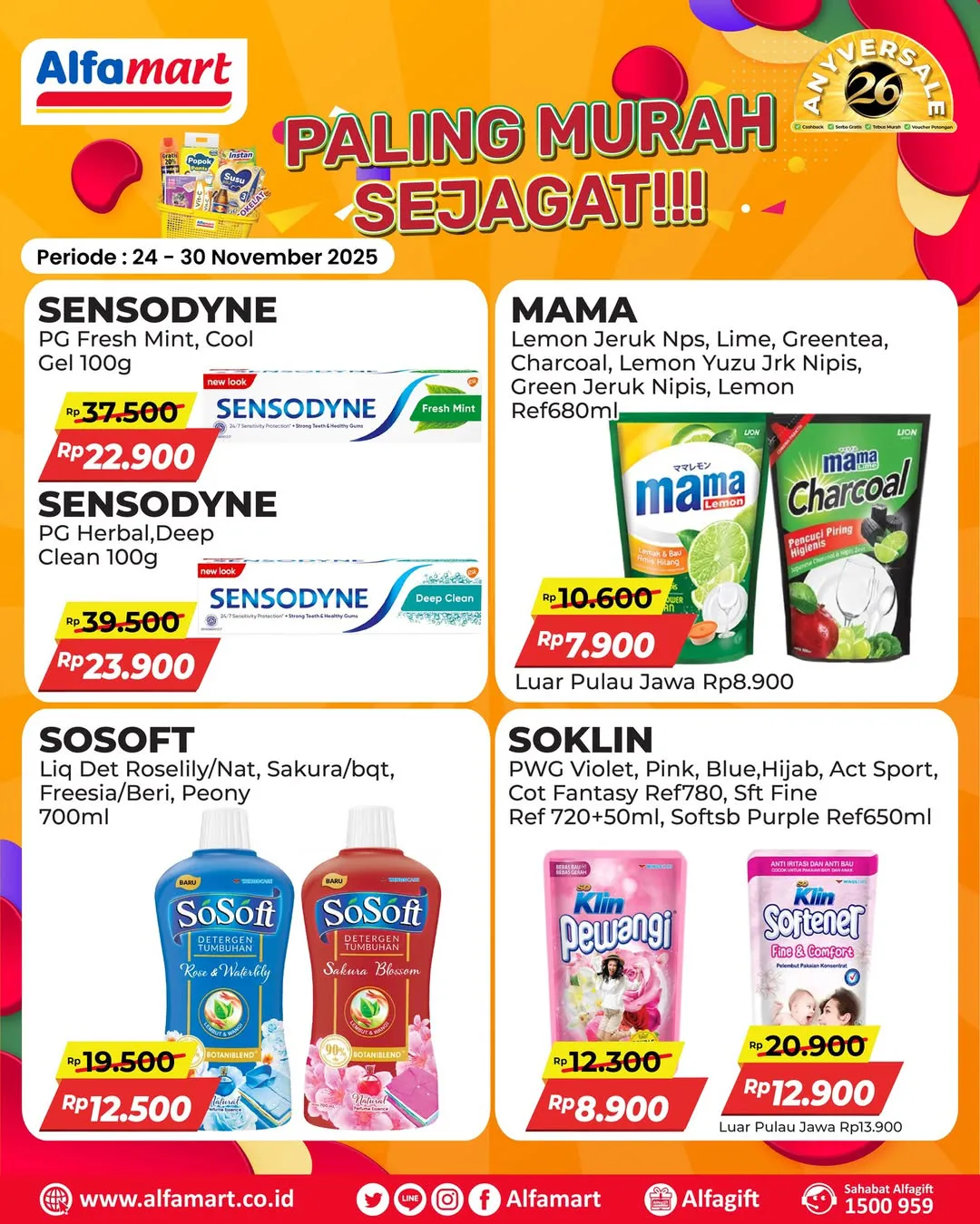 Promo Alfamart Paling Murah Sejagat periode 24-30 November 2025 berlaku di Alfamart seluruh Indonesia, kecuali Alfamart di wilayah Nusa Tenggara Timur (NTT).