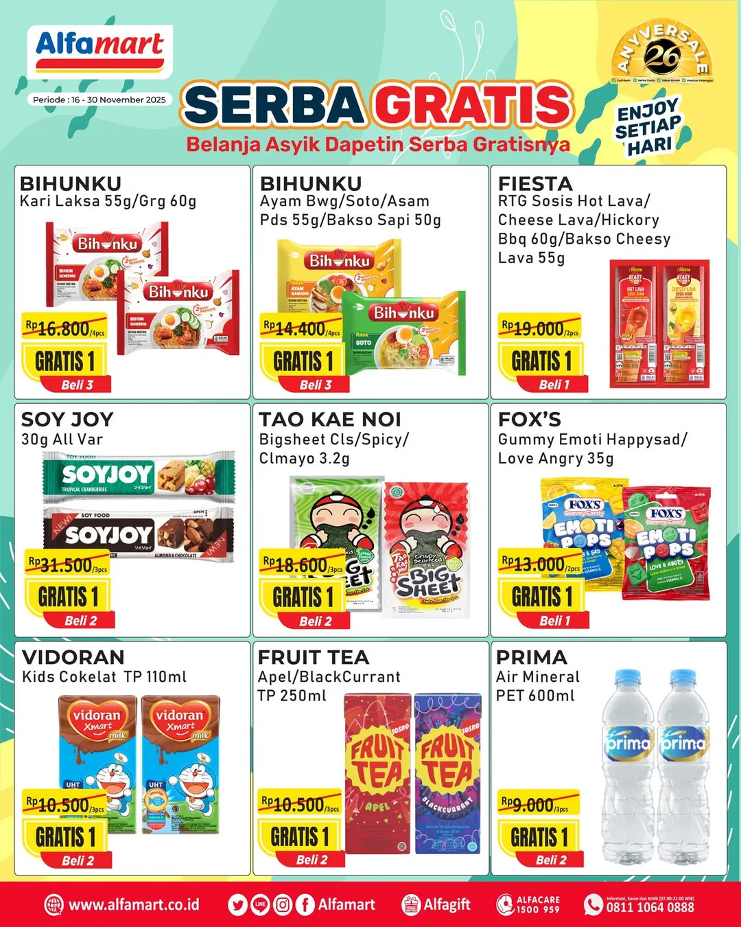 Melansir Instagram Alfamart (@alfamart), inilah beragam merek produk yang termasuk dalam Promo Alfamart Serba Gratis periode 16-30 November 2025: /2025/11/19/1877753261o.jpg)