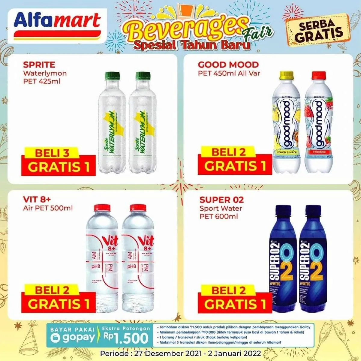 Promo Alfamart Serba Gratis spesial tahun baru berlaku di Alfamart seluruh Indonesia kecuali Alfamart di wilayah Nusa Tenggara Timur (NTT).