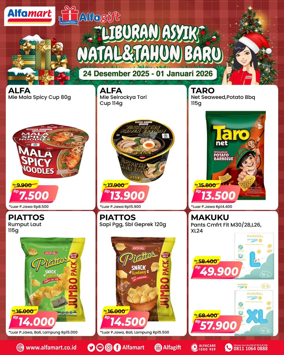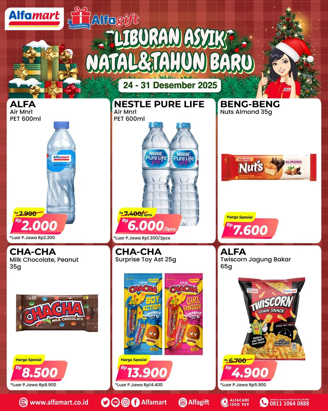 Oh iya, promo Alfamart Spesial Nataru periode 24 Desember 2025-1 Januari 2026 berlaku di Alfamart seluruh Indonesia.