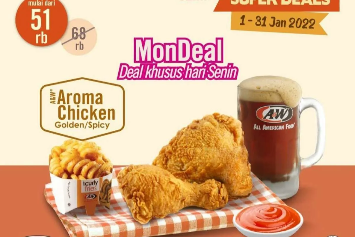 MOMSMONEY.ID - Paket Monday Deal atau MonDeal dari A&W hadir lagi pada Senin (24/1) ini. Ada diskon gede-gedean yang tersedia khusus untuk Anda para pecinta A&W Resto, loh!