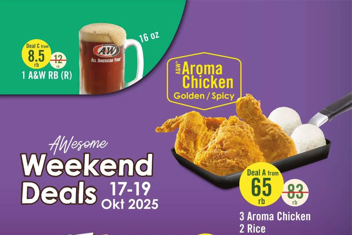 Selain itu, A&W juga ada promo Super Deals Sharing Meal dengan paket Aroma Chicken untuk rame-rame. Promo yang satu ini bisa Anda nikmati setiap hari selama bulan Oktober 2025.
