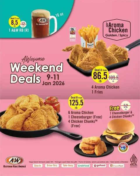 - Deal A (mulai Rp 86.500): 4 Aroma Chicken + 1 Fries