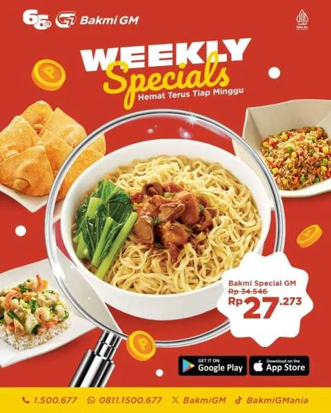 Selain itu, Bakmi GM juga ada promo Weekly Specials setiap Selasa. Anda bisa menikmati seporsi Bakmi GM hemat mulai Rp 27.000-an saja.