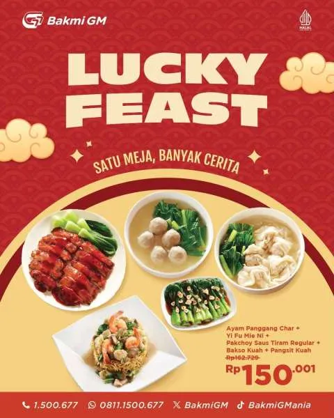 Selain itu, buat Anda yang ingin makan rame-rame dengan hemat, menunya beragam dan nikmat, sambil menyambut Tahun Baru Imlek, Bakmi GM lagi ada promo Lucky Feast lo.